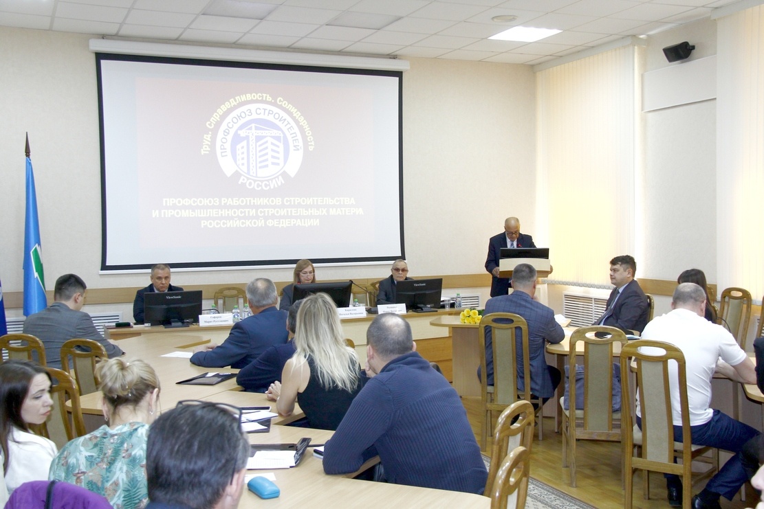 С отчетным докладом о работе республиканского комитета профсоюза за прошедшие пять лет выступил председатель ТРО Профсоюза работников строительства и промстройматериалов РФ Вадим Михасев.