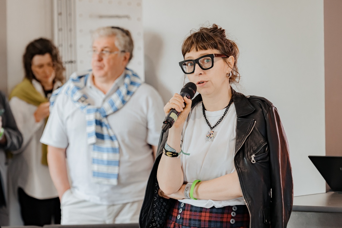 Проект открытой арт-резиденции для людей с ментальными особенностями представила куратор Евгения Штиль из Санкт-Петербурга. Она рассказала, что в городе на Неве такая практика существует уже не первый год. По ее словам, таланты удается находить в самых неожиданных местах — психоневрологических интернатах, реабилитационных центрах и так далее. В рамках программы в Нижний Новгород приедут две художницы.