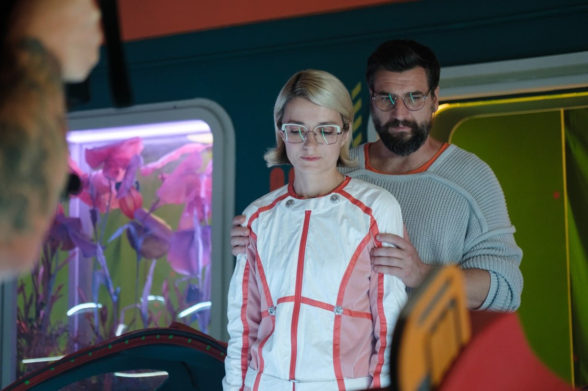 Крош и Ежик, согласно сюжету, находят устройство, которое переносит их из анимационного мира в игру про будущее. Там они обычные дети, которые вместе с родителями (их сыграли Александр Устюгов и Надежда Михалкова) летят на космическом корабле на Марс.