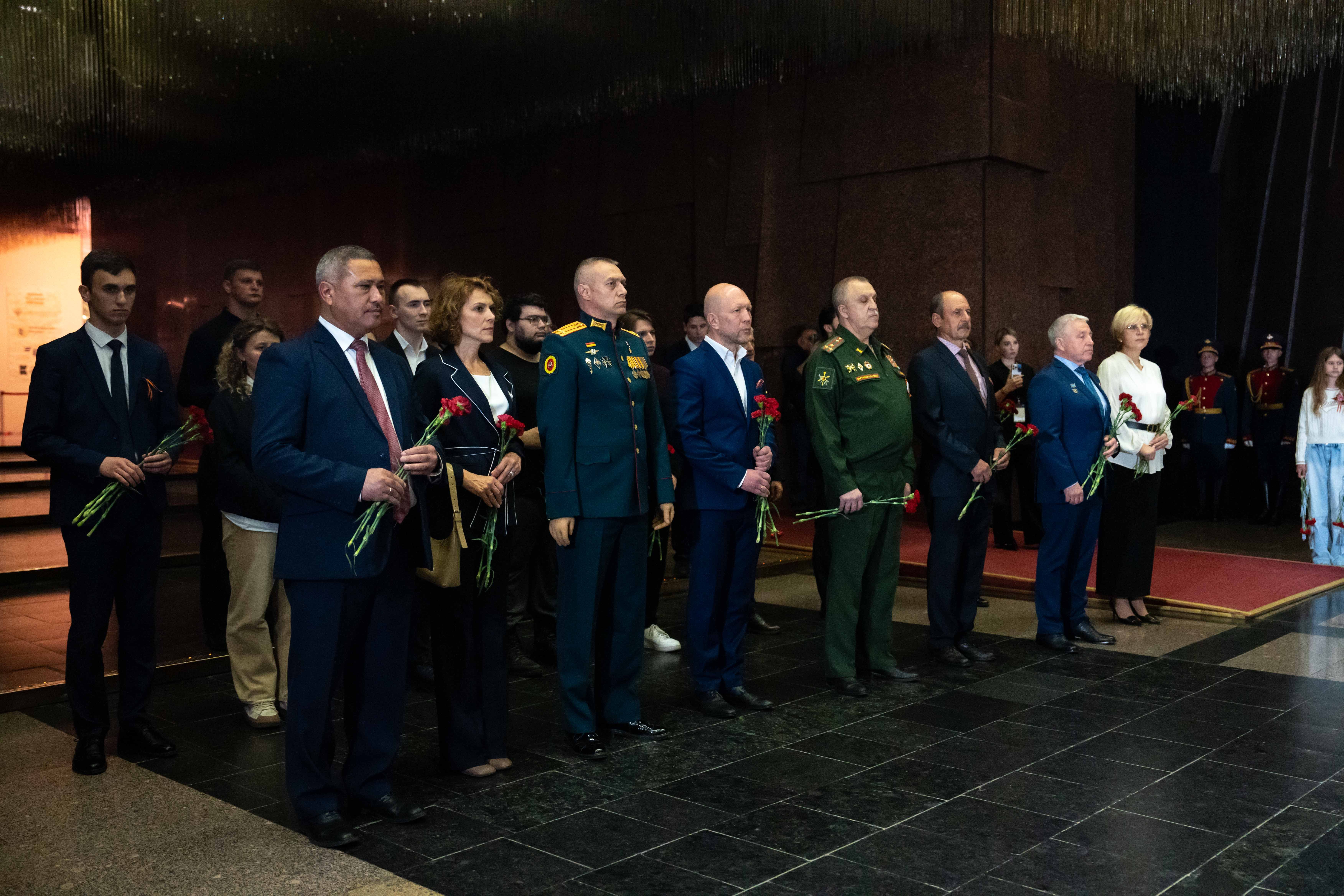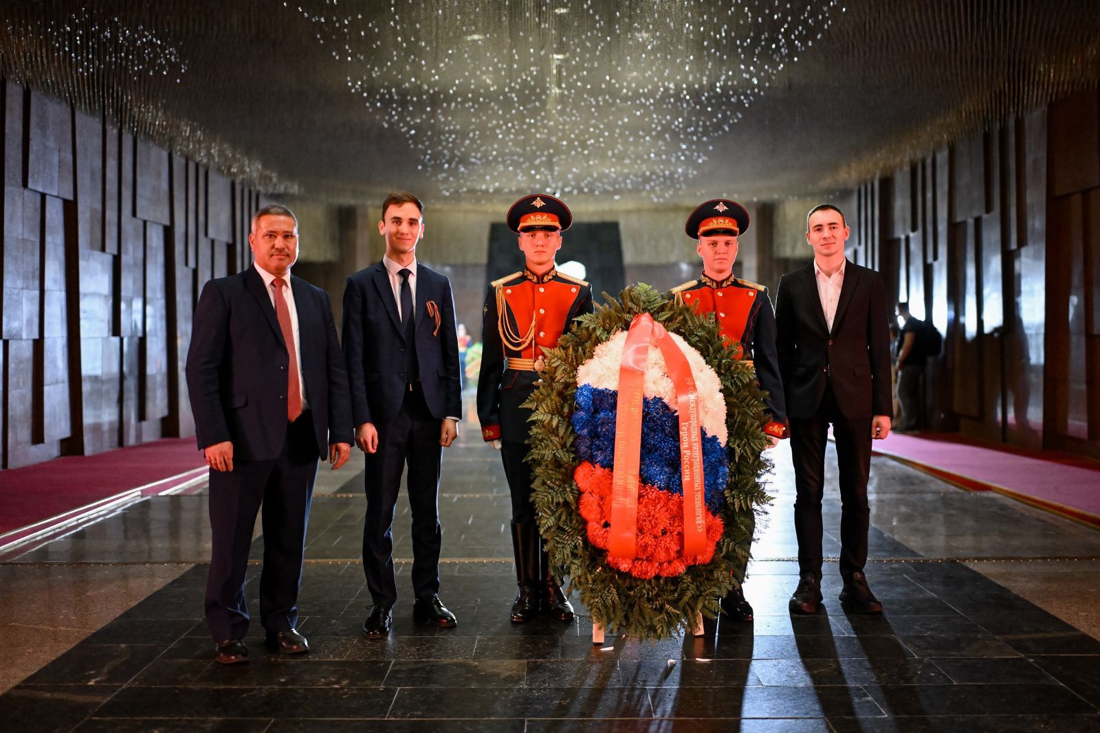 Торжественная церемония началась с возложения венков к монументу «Скорбь» в зале Памяти и скорби Музея Победы.