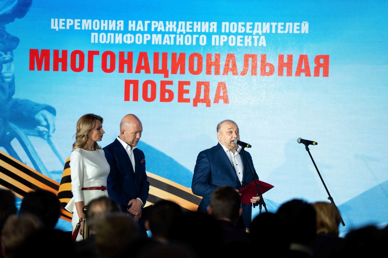 20 мая в Музее Победы на Поклонной горе наградили победителей проекта «Многонациональная Победа» - авторов рассказов в народный альманах «Незабытые истории Победы» и публикаций в социальных сетях в рамках марафона «Вспомним всех поименно». Печатные издания и дипломы им вручили руководитель Департамента национальной политики и межрегиональных связей города Москвы Виталий Сучков, первый заместитель председателя комитета по культуре Государственной Думы Федерального Собрания Российской Федерации Елена Драпеко, председатель Президиума Общероссийской организации «Офицеры России», Герой России Сергей Липовой, Герои России Аркадий Корольков, Максим Шоломов, Вячеслав Сивко, Владимир Захаров, Юрий Ващук, Герой Советского Союза Наби Акрамов.
