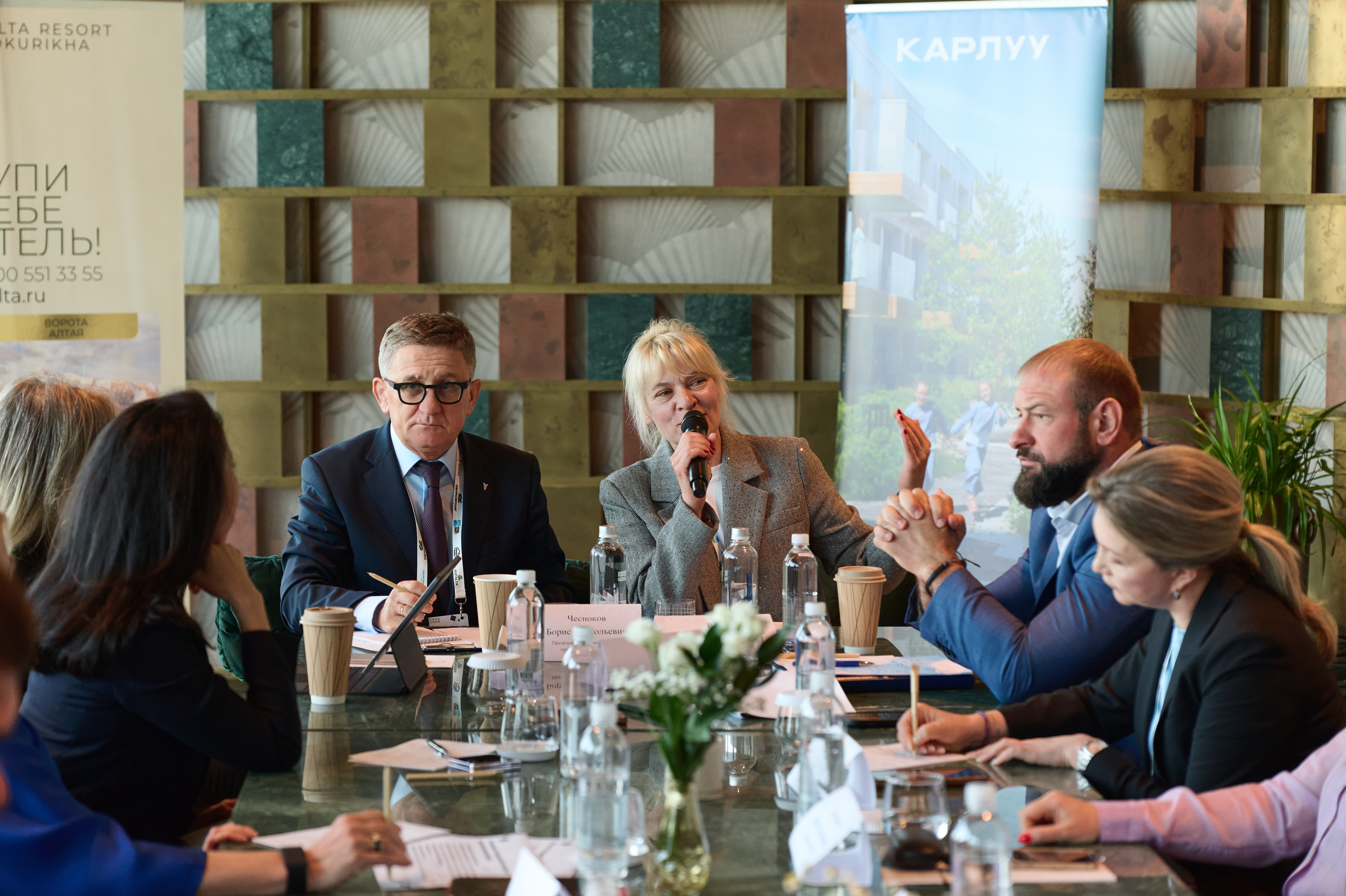 • Александр Мишустин - председатель Правления Союза строителей Алтайского края, Марина Ракина - президент Союза риэлторов Барнаула и Алтая, председатель Комитета ТПП Алтайского края в сфере строительства и рынка недвижимости и Борис Чесноков
