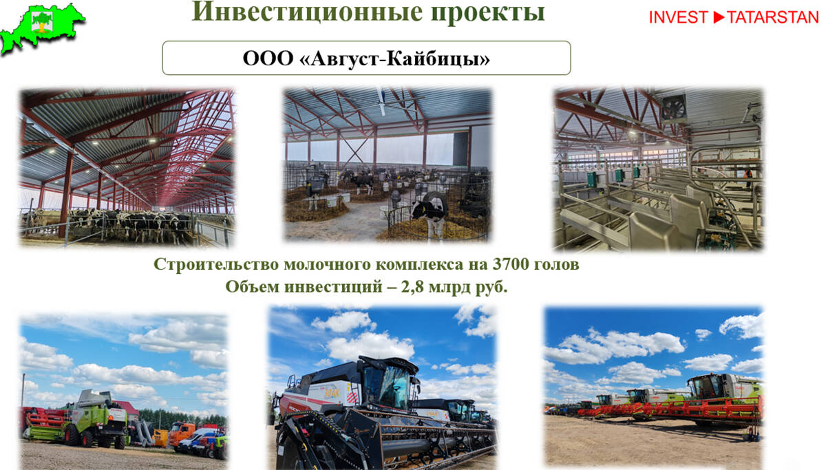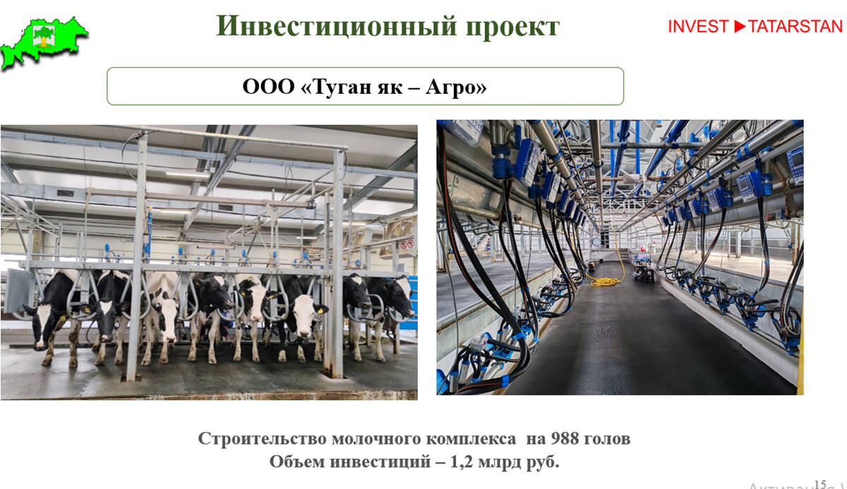 Строительством молочного комплекса почти на 1 тыс. голов дойного стада занимается другой инвестор, «Туган як – Агро». Проект оценивается в 1,2 млрд рублей.
