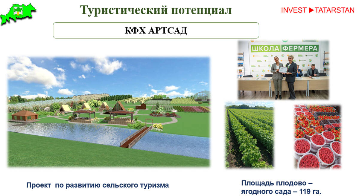 В районе сельский туризм развивает крестьянское (фермерское) хозяйство «Артсад». Оно имеет плодово-ягодный сад с клубникой и малиной, а еще выиграло грант по агротуризму. В планах создать глэмпинг «Ягодное королевство».