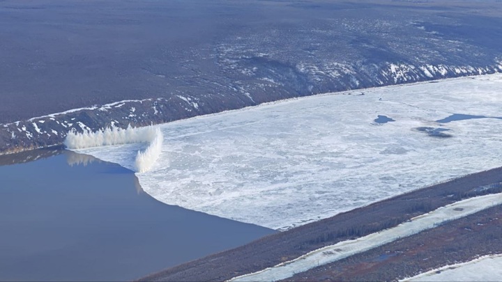 "Утром лед еще был приподнят. В Среднеколымске последние три дня солнечно, лед ослабевает. С плиты, которая удерживает затор, откалываются куски пласта", – сообщил начальник службы спасения Якутии, руководитель взрывной группы Иннокентий Андросов.