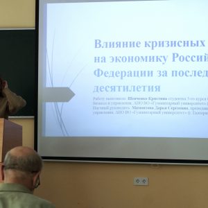 - «За актуальность исследования» — Шевченко Кристина Александровна. Тема работы: «Влияние кризисных ситуаций на экономику Российской Федерации за последние десятилетия». Руководитель — Мамонтова Дарья Сергеевна.
