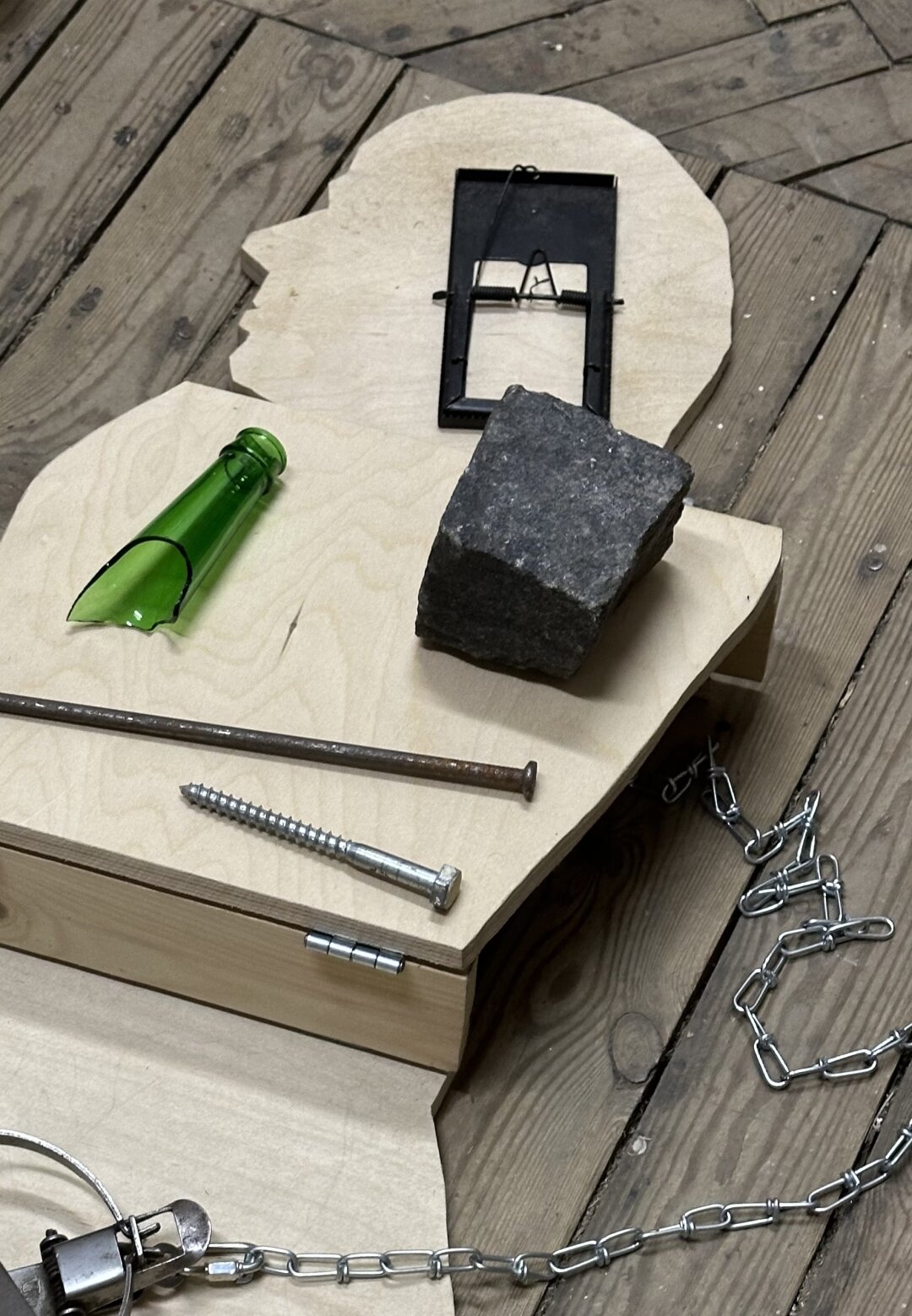 В экспозиции — 21 работа в разных техниках: от инсталляции, живописи и графики до керамики и вышивки.