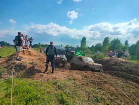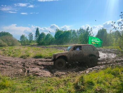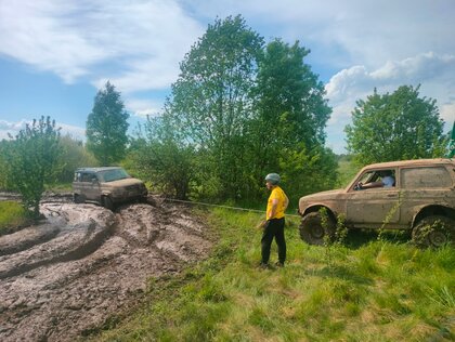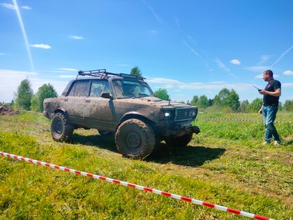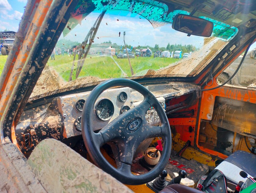 Успевшие покатать участников по трассе были красивы как на подбор: толстый слой глины, прилипшие сухие стебли и листва не позволяли различить настоящий цвет. В кабинах у некоторых было не лучше: особенно аутентично выглядели владельцы багги, словно нырнувшие в жижу. Настоящий джипер не боится испачкаться на бездорожье: суть движения - преодоление препятствий, а не чистота.