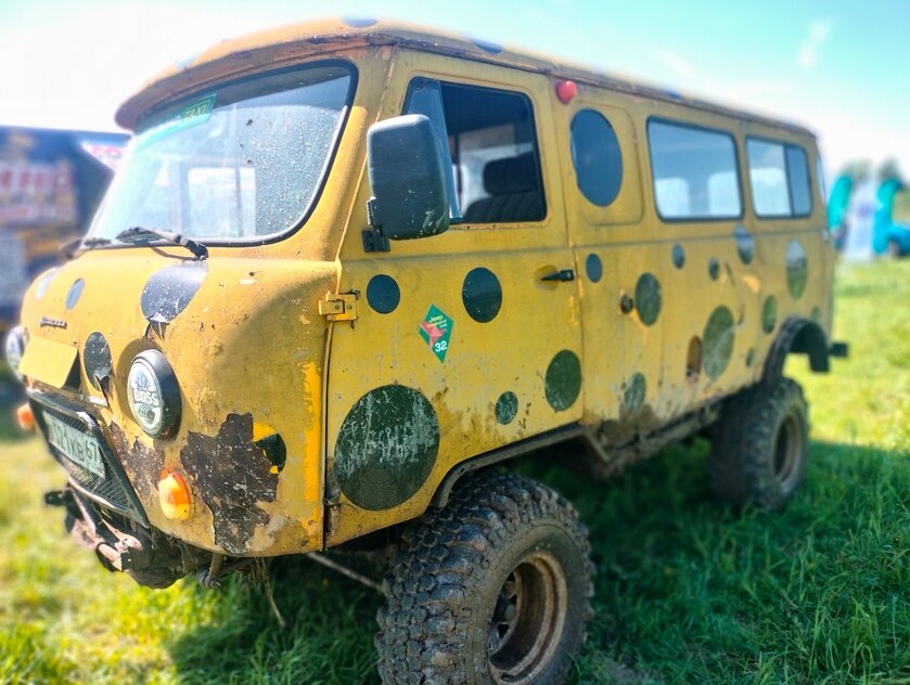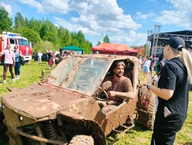 Главными звездами фестиваля были машины. Бигтраки, например, мощный “Лесник” и брутальный ярцевчанин “Финист”. Легкие багги. Заслуженный, но все еще дающий жару “пенсионер” ГАЗ-69. УАЗы на любой вкус и цвет: один из самых необычных - буханка в “шмелиной” оранжево-черной расцветке. “Лада-семерка” на огромных колесах, классические “Нивы” и многое-многое другое. Часть из них участвовала в OFF-Road Taxi: за 400 рублей можно прокатиться пассажиром по грязевой трассе и узнать, что чувствуют внедорожные экипажи во время заезда. Мне довелось проехаться в кузове красного бигтрака "Финист-Добрыня" вместе с очаровательной Викторией.