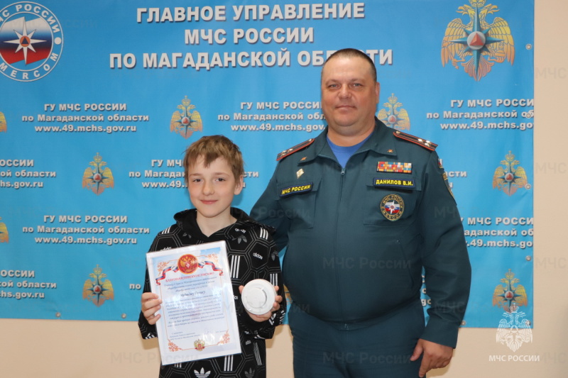 29 мая начальник Главного управления МЧС России по Магаданской области полковник внутренней службы Валерий Данилов лично вручил благодарственные письма ученикам 6 класса школы №28 Денису Медведеву и Ярославу Савченко.