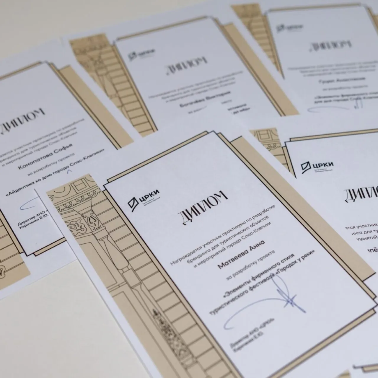 Студенты представили разработанную айдентику для туристского фестиваля «Городок у реки», дня города с ярмарками клепиковских ремесел, музея узкоколейки «Мещерская магистраль» и проекта «Город юности Есенина». Эти логотипы и паттерны могут быть использованы для создания сувенирной продукции и мерча.
