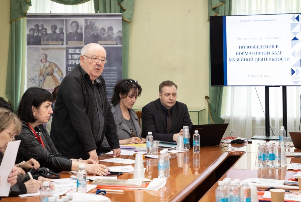 27 мая состоялся методический семинар, на который собрались представители практически всех муниципальных музеев Карелии, а также Музея изобразительных искусств республики и Музея-заповедника «Кижи». Директор Национального музея Карелии Михаил Гольденберг, открывая мероприятие, отметил особую важность своевременного ознакомления руководителей и сотрудников музейных фондов с изменениями и новыми нормами российского законодательства, регулирующего сферу музейного и архивного делопроизводства. По мнению руководителя, постоянное обновление знаний позволит специалистам качественно исполнять профессиональные обязанности и эффективно сохранять культурное наследие Карелии.