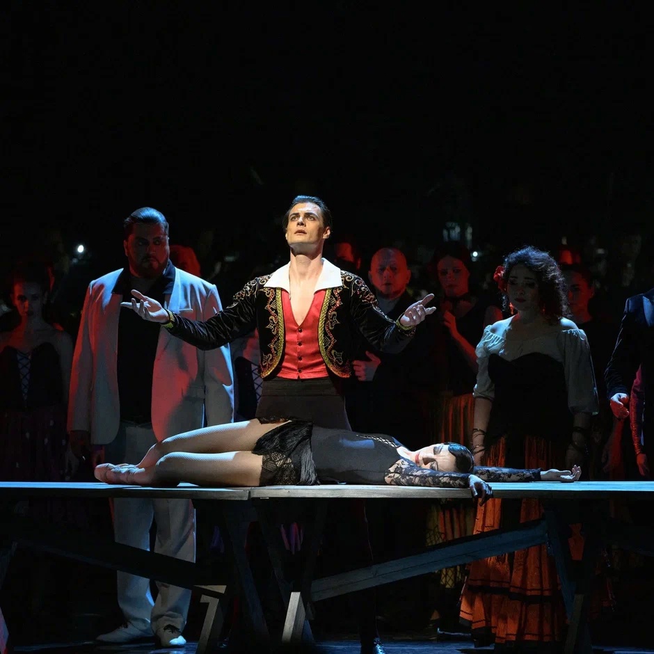 Первое отделение вечера балета «Фантазии на тему «Кармен» включает «Кармен-сюиту» Ж. Бизе-Р. Щедрина – хореографическую версию знаменитой оперы. Свою трактовку и осмысление образа Кармен предложил балетмейстер-постановщик Иван Фадеев. Второе отделение (хореограф- постановщик Андрей Меркурьев) посвящено творчеству М. Равеля: «Болеро. Альборада. Павана».