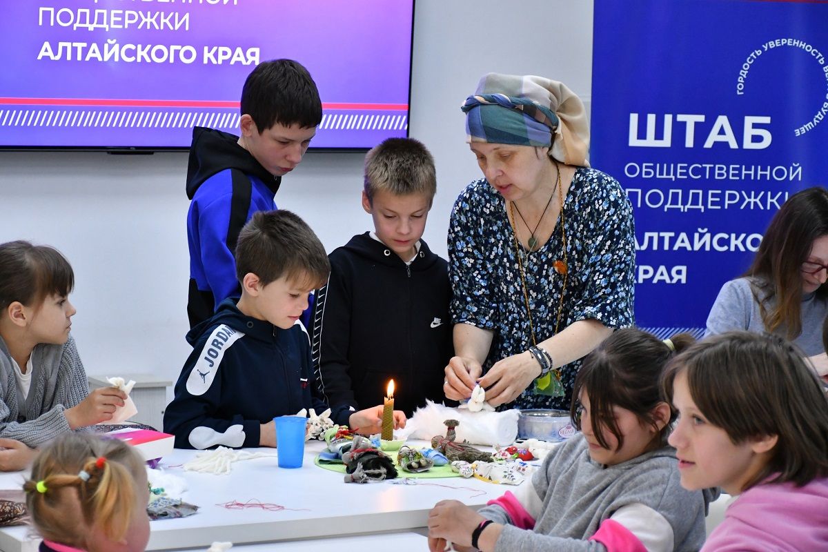 В штабе общественной поддержки «Единой России» на Алтае состоялся мастер-класс по изготовлению куклы-оберега. Его участниками стали ребята, оставшиеся без попечения родителей. Мастерица Центра помощи семье «Светоч» Оксана Патрикеева познакомила детей с традицией создания народной игровой куклы-зайчика.