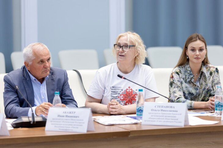 По вопросам мер, направленных на популяризацию русского языка как государственного, выступили депутат Государственного Совета Республики Крым, ректор ГБОУ ДПО РК «Крымский республиканский институт постдипломного педагогического образования» доктор филологических наук, профессор Александр Рудяков, председатель совета Общественной организации «Региональная болгарская национально-культурная автономия Республики Крым «Паисия Хилендарского» Иван Абажер, другие.