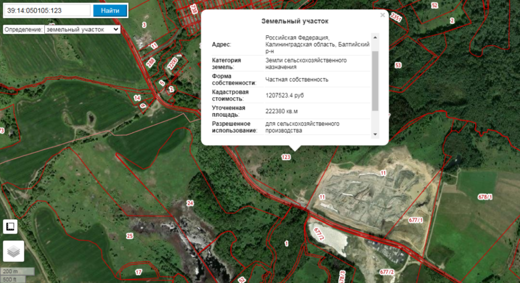 По данным ЕГРН, участок 39:14:050105:123 был образован в сентябре 2024 года и принадлежит компании «ЦБИ-Калининград» на праве частной собственности.
