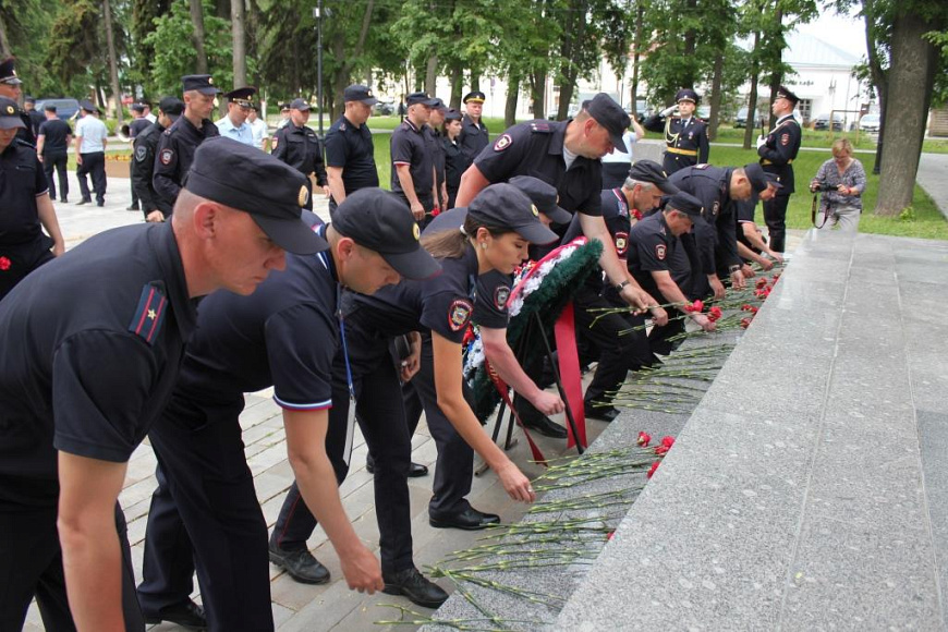 В знак памяти о героических подвигах солдат, отдавших жизни в борьбе за свободу Родины, заместитель начальника Департамента по материально-техническому и медицинскому обеспечению МВД России генерал-майор внутренней службы Михаил Чаткин вместе с членами судейской коллегии и представителями команд возложили цветы к памятнику-панораме Мемориала Великой Отечественной войны 1941-1945 годов «Вечный огонь».