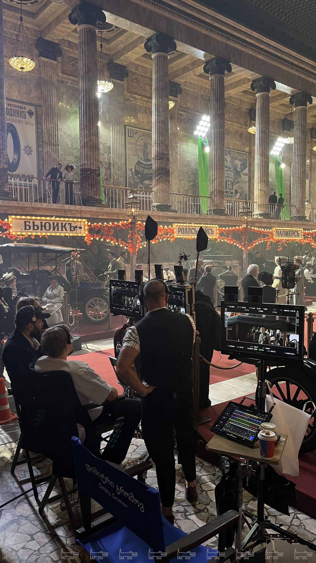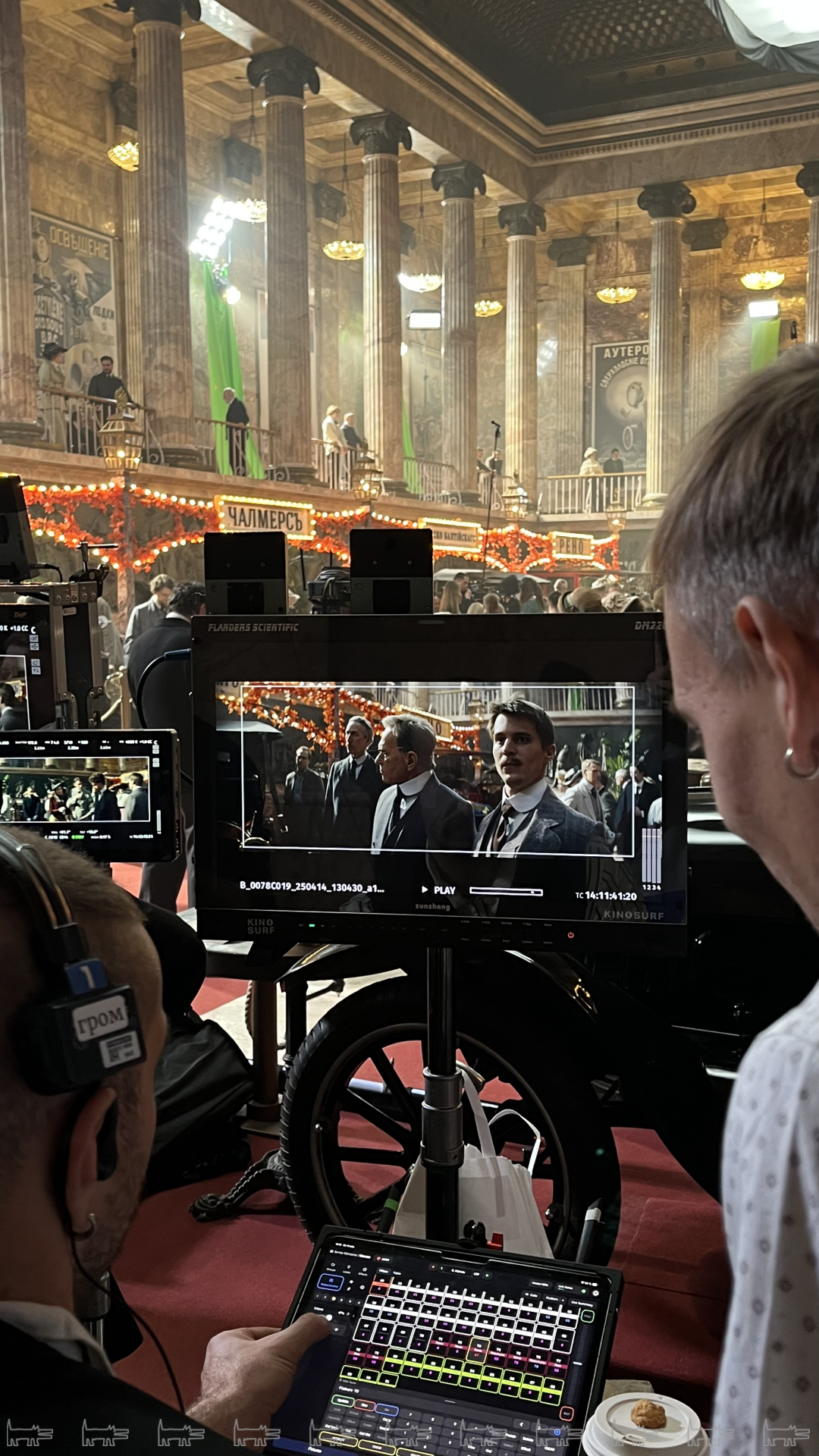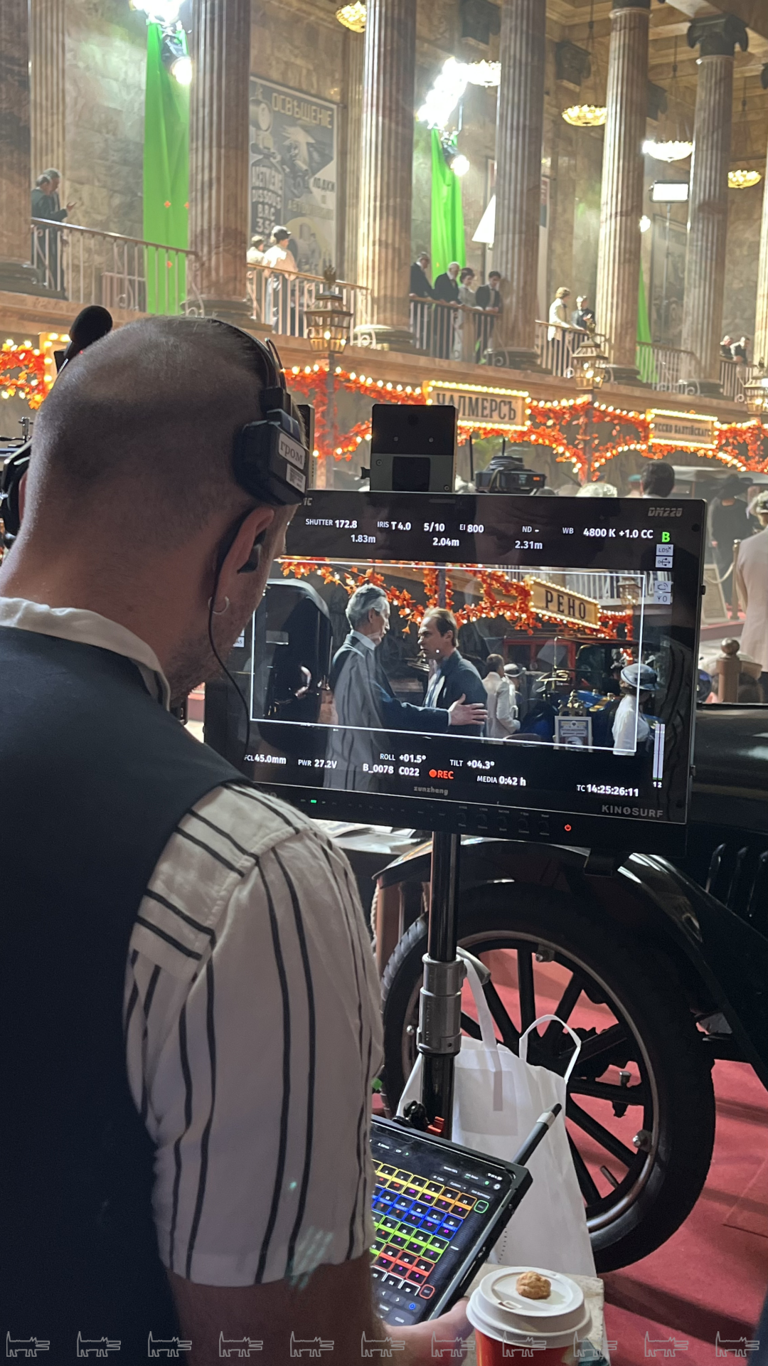 Творческий процесс в самом разгаре. Кажется, на площадке не меньше пятисот человек. Из толпы раздаются хаотичные крики: «Бригадиры все поправили? Никто в кадре ходить не будет?», «Художники, пожалуйста, не прикручивайте обратно стойки!», «Репетиция — целиком!».