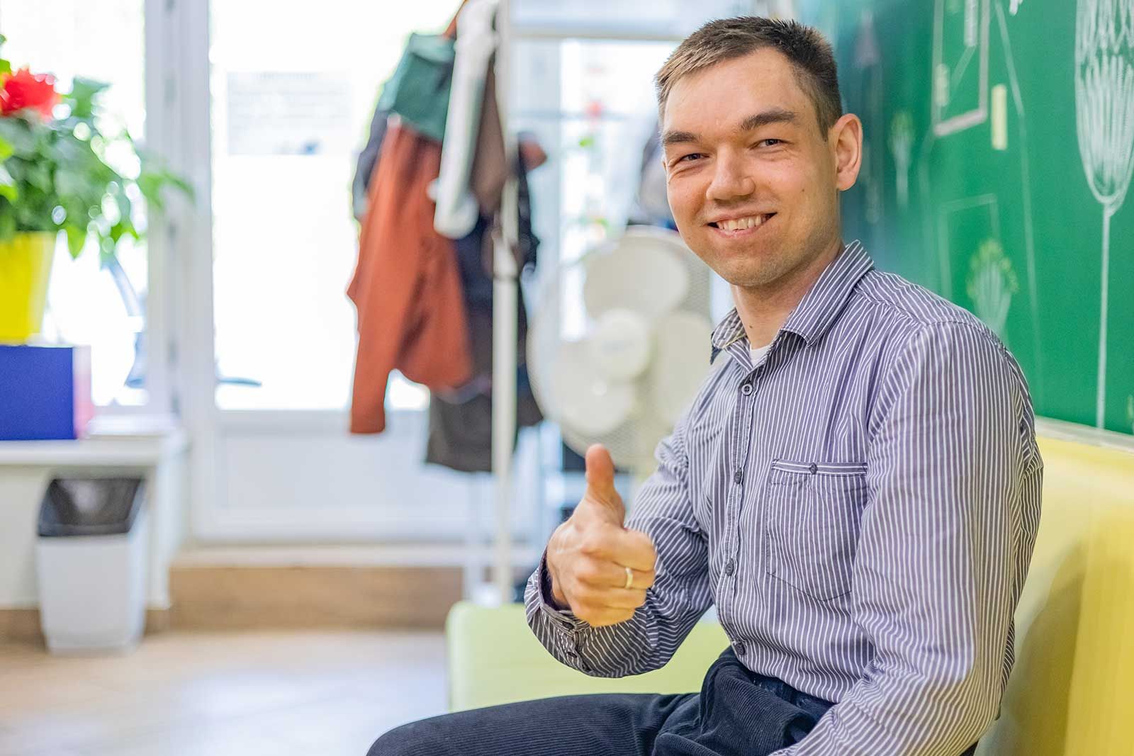 Другой молодой человек, 29-летний Иван Пронин, тоже достиг успехов. Ему непросто говорить, но в образе ведущего он по памяти читает философский текст, написанный преподавателями «Дома под солнцем»: «Каждый из нас сам выбирает, какой дорогой ему идти или ехать, какие добрые поступки совершать». Эти слова со смыслом: они касаются прежде всего ребят из «Дома под солнцем». Любой из них может выбрать роль в «Особом театре» в зависимости от способностей и интересов.