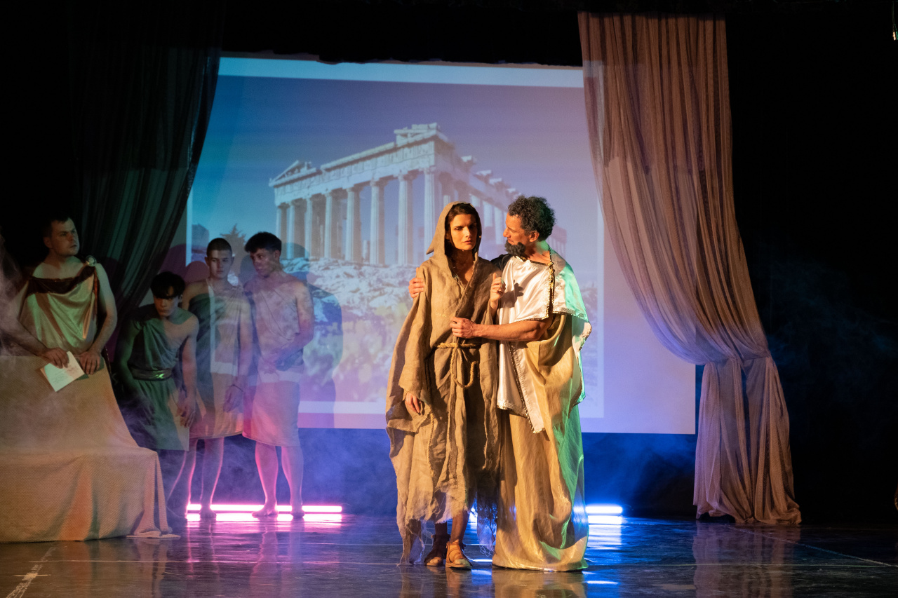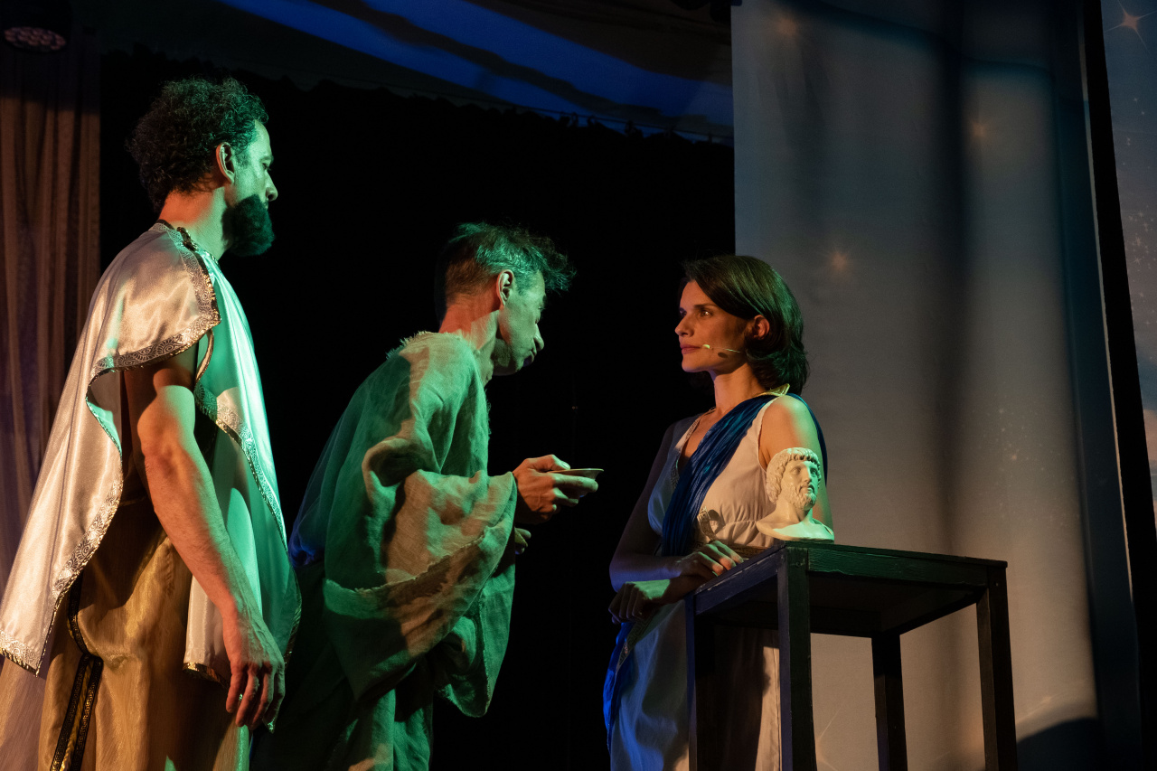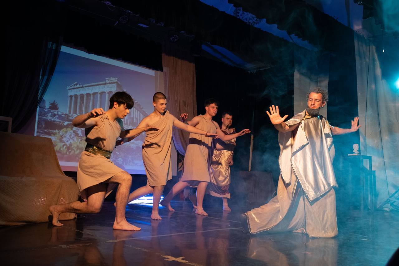 Однако, ключевой момент спектакля – встреча с великим философом Греции – Сократом. Автор пьесы, философ по образованию, была влюблена в этого героя, его мудрость помогла ей выстоять в годы испытаний. Но кто же более всего затронет сердце и разум главной героини в нашем спектакле?