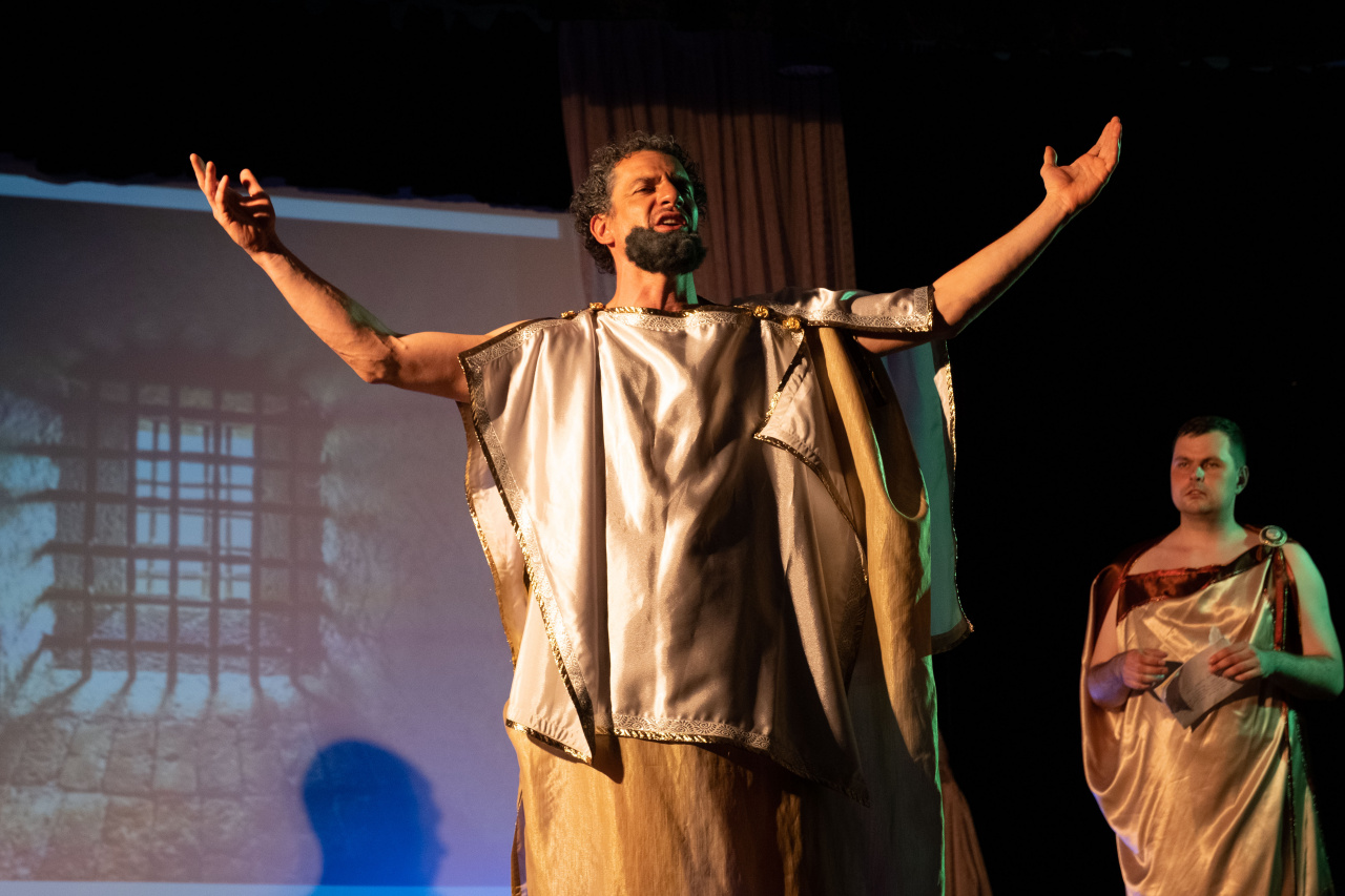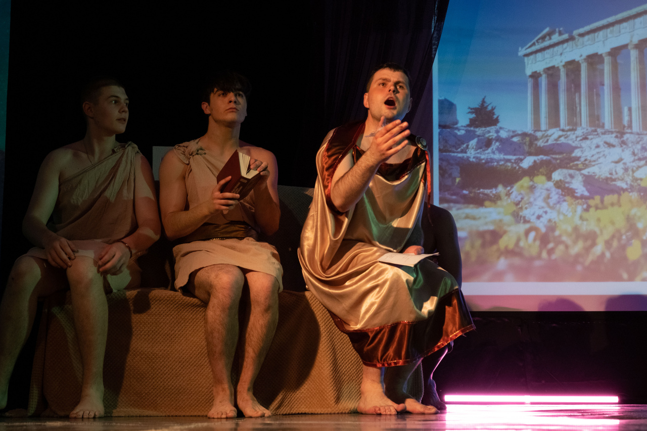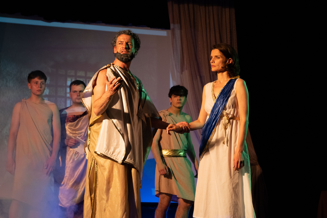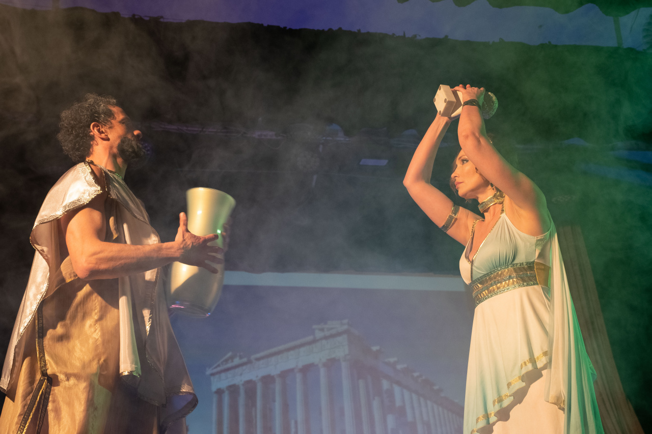 Однако, ключевой момент спектакля – встреча с великим философом Греции – Сократом. Автор пьесы, философ по образованию, была влюблена в этого героя, его мудрость помогла ей выстоять в годы испытаний. Но кто же более всего затронет сердце и разум главной героини в нашем спектакле?