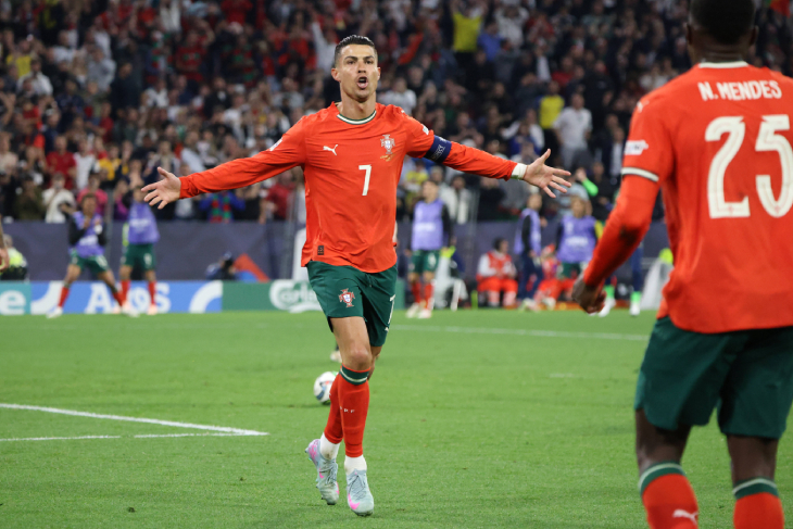 Пять минут спустя, когда Германия ещё не успела переварить гол, уже получила второй. Нуну Мендеш подключается по левому флангу после передачи Бруну, врывается в штрафную и простреливает в центр. Там — конечно, он, Криштиану Роналду. Без опеки, в шести метрах от ворот. 137-й гол за сборную и, возможно, один из самых важных. В этот момент на поле будто выключили немецкую сборную. А на трибунах стало слышно: «Сииии!». Кстати, сам Роналду фирменный прыжок не исполнил — вместо этого отметил гол с Нуну Мендешем.