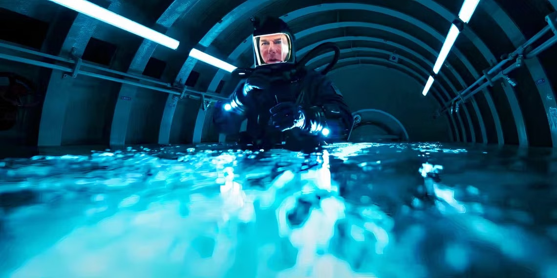 В первой сцене Итан Хант ныряет на экстремальную глубину, чтобы добраться до затонувшей атомной подлодки “Севастополь” (ее мы видели в седьмом фильме). Эта часть в какой-то степени напоминает хоррор – темно, страшно и тесно. Том Круз проносится по борту в опасной близости от винтов, а через пару минут рискует жизнью пробираясь по затопленным коридорам и палубам к заветной цели. Я сидел вжавшись в кресло – снято настолько выверено и мастерски, что впору словить приступ клаустрофобии.