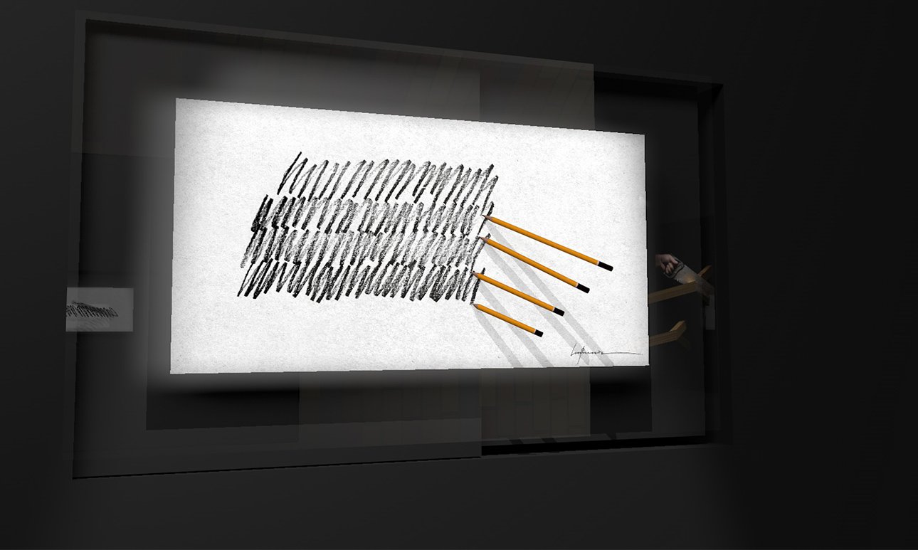 В проекте «Инструментарий» Платон Инфанте отказывается от дихотомии «виртуальное/реальное» и исследует их единство. Созданные художником объекты — это привычные вещи, помещенные в виртуальное пространство без искажений: карандаш по-прежнему рисует, бумага шелестит. Инфанте не видит в цифровой среде угрозу, напротив, он рассматривает ее как равноправную материальной зону художественного действия. Его произведения часто приписывают к традиции tromp l’œil (обманка, зрительная иллюзия).