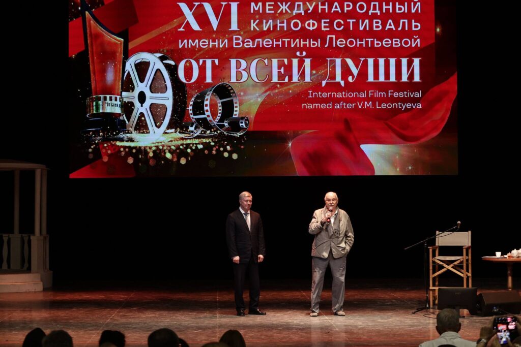 Губернатор Алексей Русских вручил главную награду фестиваля — Гран-при «Честь и достоинство» режиссёру, автору и ведущему программы «БесогонТВ», художественному руководителю «Мастерской «12» Никиты Михалкова» Никите Михалкову.