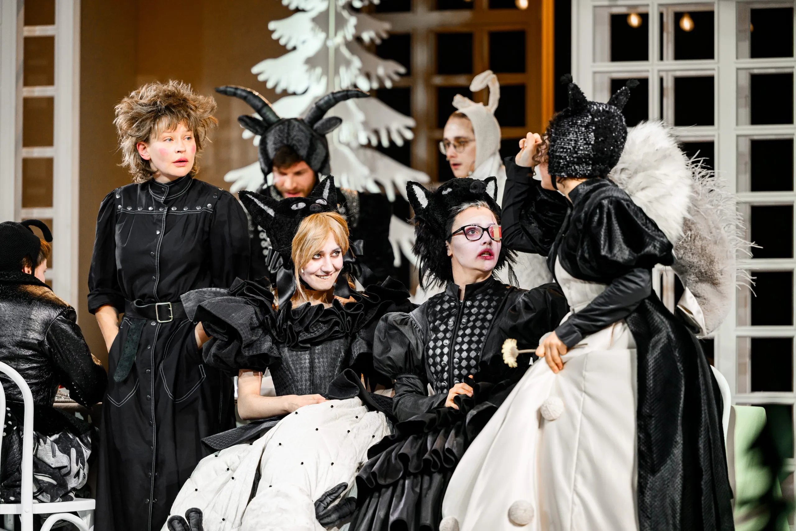 Особое внимание в спектакле уделено облику героев: они «одеты в карнавальные костюмы, напоминающие старые ёлочные игрушки из ваты, обсыпанные битым стеклом». Эти образы создала Надежда Васильева — художник по костюмам, давно ставшая признанным мастером в кино, а с Театром Наций сотрудничавшая в другом качестве: для видеоинсталляции, предваряющей спектакль Максима Соколова «Мой брат умер», она рассказывала о последних днях своего мужа Алексея Балабанова.