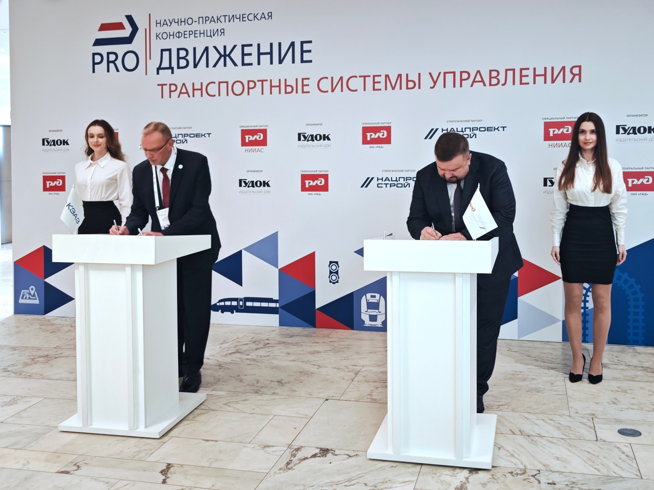 Стратегическое соглашение подписано в Санкт-Петербурге между ГК КЭАЗ и ОАО «Российские железные дороги» (РЖД) в ходе научно-практической конференции «PRO Движение. Транспортные системы управления», организованной издательским домом «Гудок».