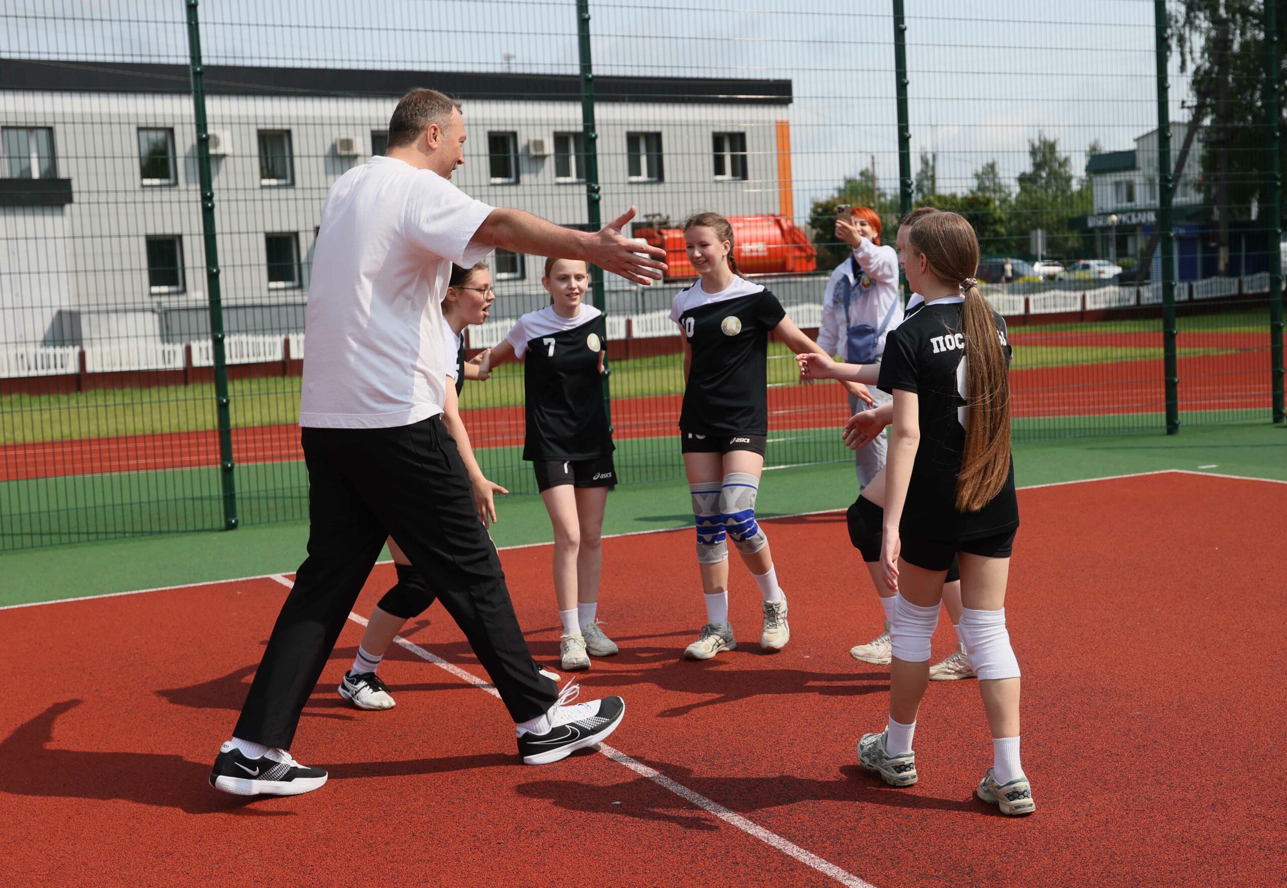 Накануне делегация ОКР побывала на фестивале «Вытокi», где встретилась с президентом НОК Республики Беларусь Виктором Лукашенко, а сегодня утром российские и белорусские олимпийцы провели мастер-классы по волейболу, вольной борьбе и легкой атлетике для юных спортсменов города Поставы.
