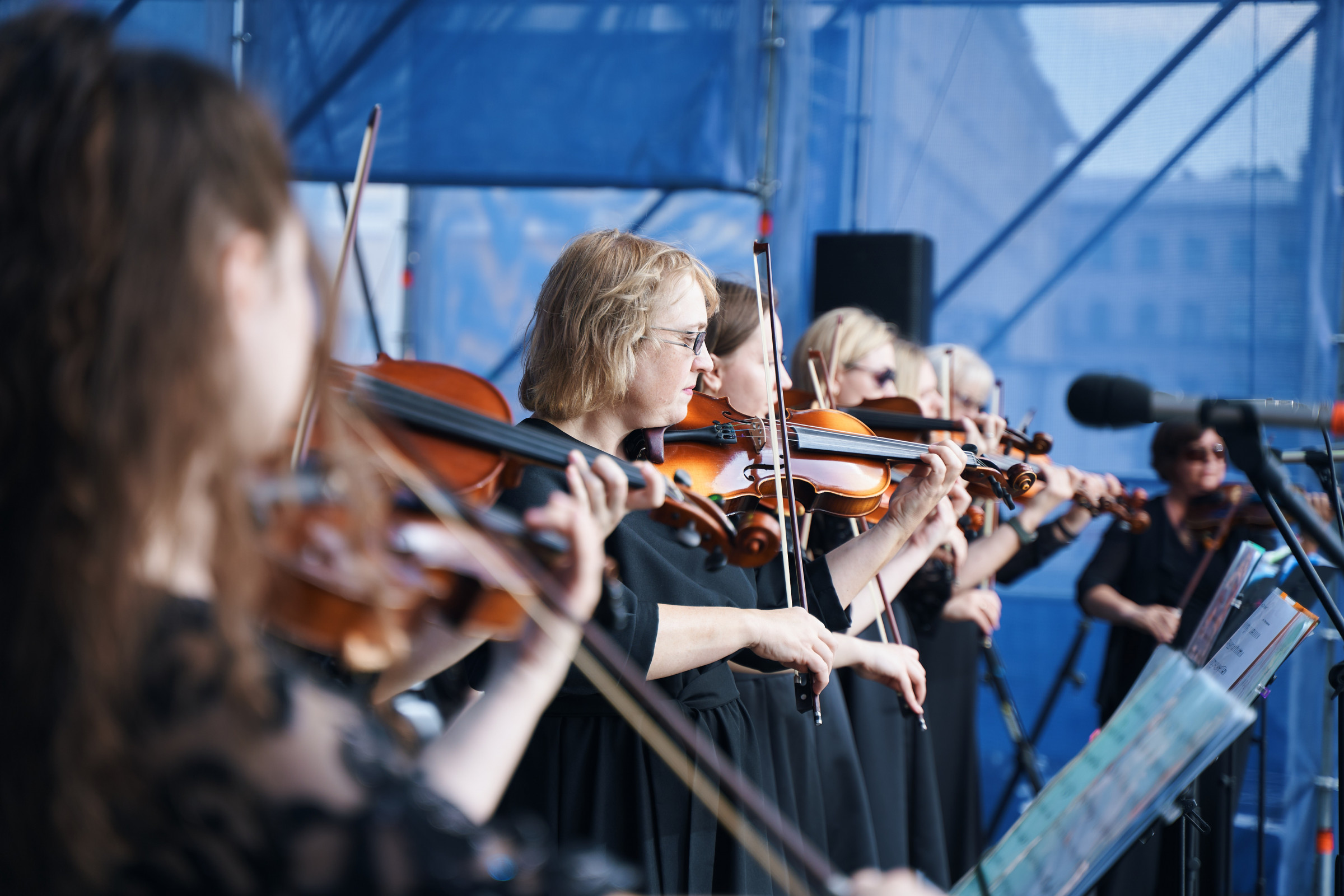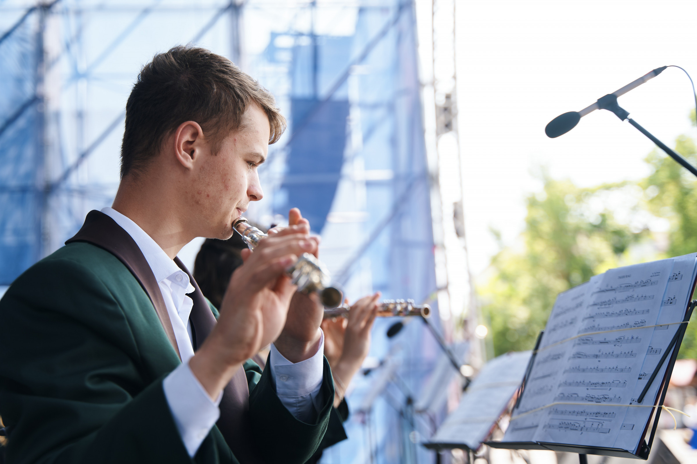 Под чутким руководством дирижераПавла Кривохижимероприятие открыло выступление Народного духового оркестра, которое сразу же захватило внимание публики энергичным исполнением известных эстрадно-джазовых композиций. Концерт стал настоящей музыкальной летописью военных лет. Звуки довоенного вальса перенесли зрителя в далекий 1941 год. Далее в исполнении духового оркестра прозвучал марш из кинофильма «Белорусский вокзал».