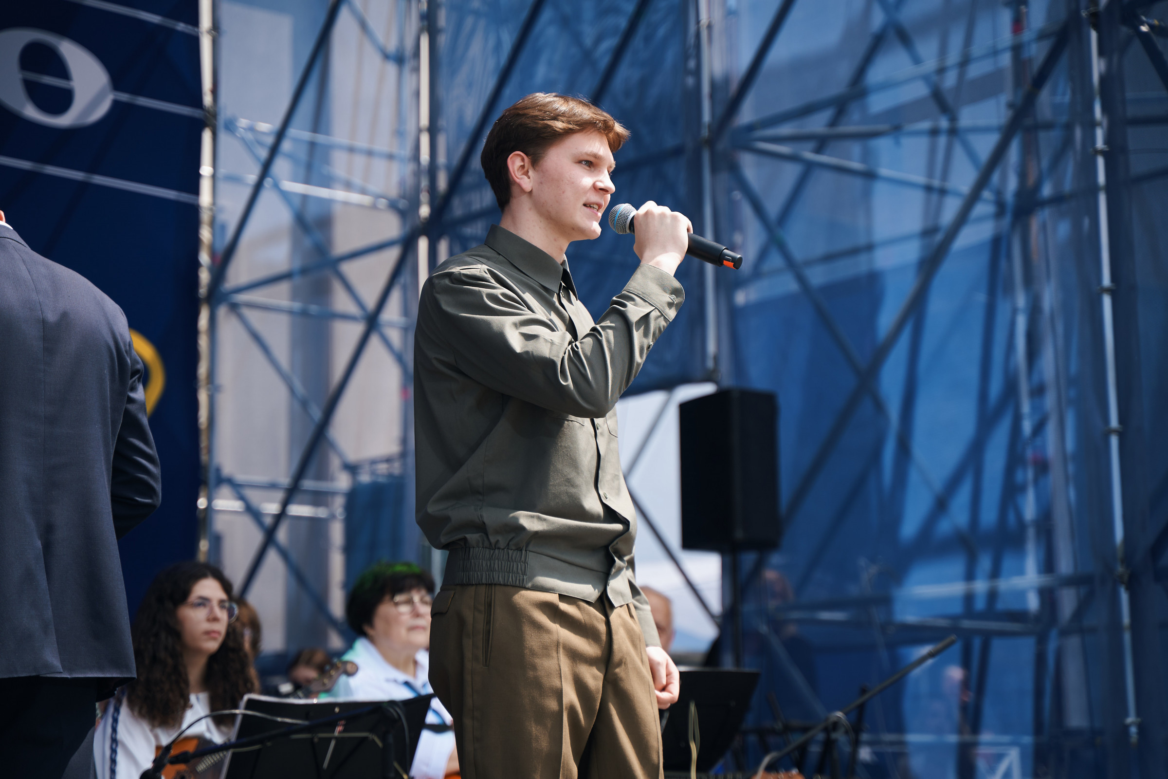 Проникновенным было выступление вокально-эстрадной студии «Влюбленная душа», исполнившей композицию «Помните!». Голоса артистов наполнили площадку чувством благодарности и уважения к ветеранам, подчеркивая важность сохранения исторической памяти.