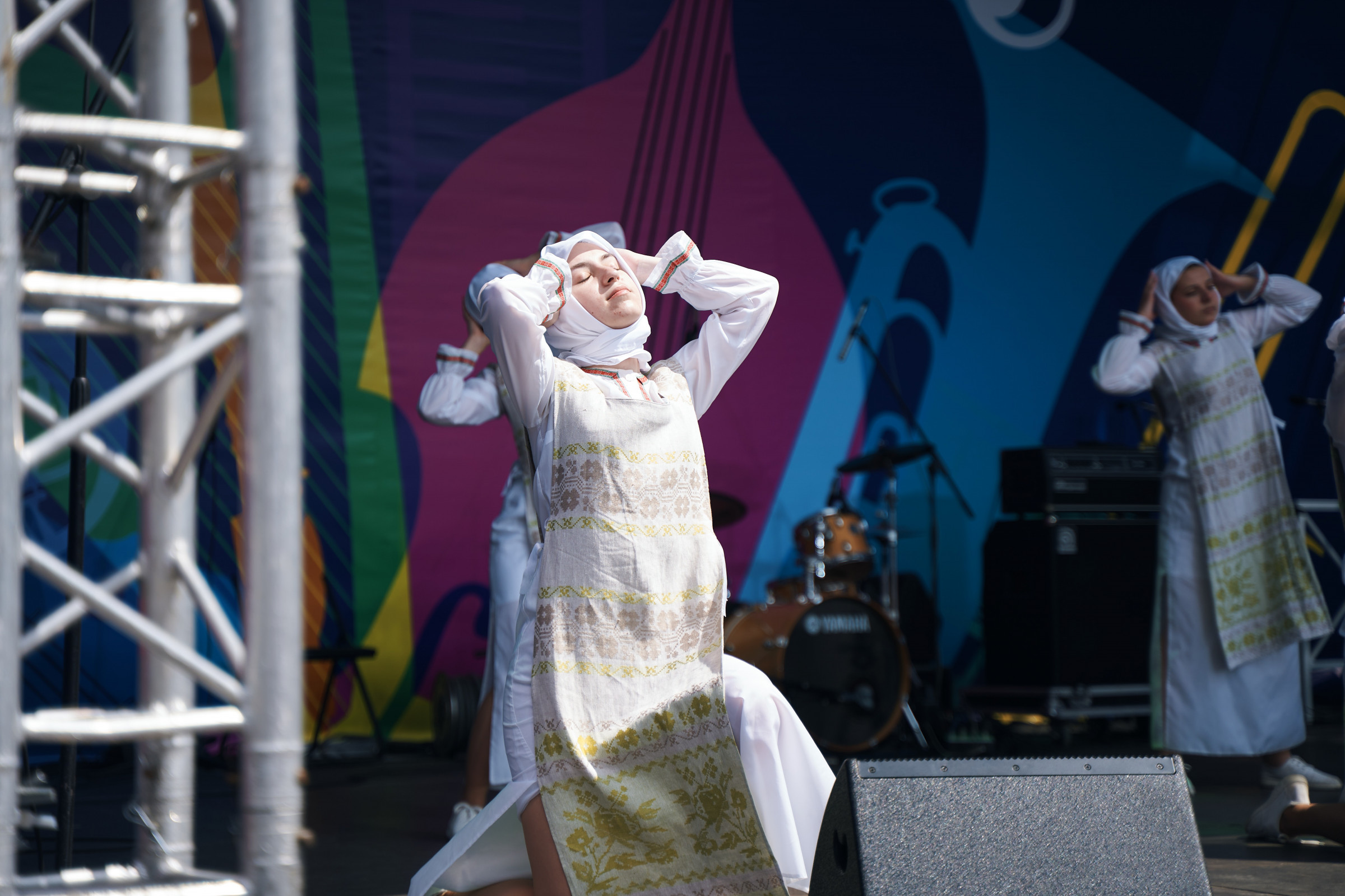 Беларусь первой приняла натиск врага, став ареной жестокой борьбы в самом начале Великой Отечественной. Патриотические мотивы стали главной темой выступления ансамбля народной песни «Каханачка». В исполнении коллектива прозвучали композиции «Два полі» и «Партызанская».
