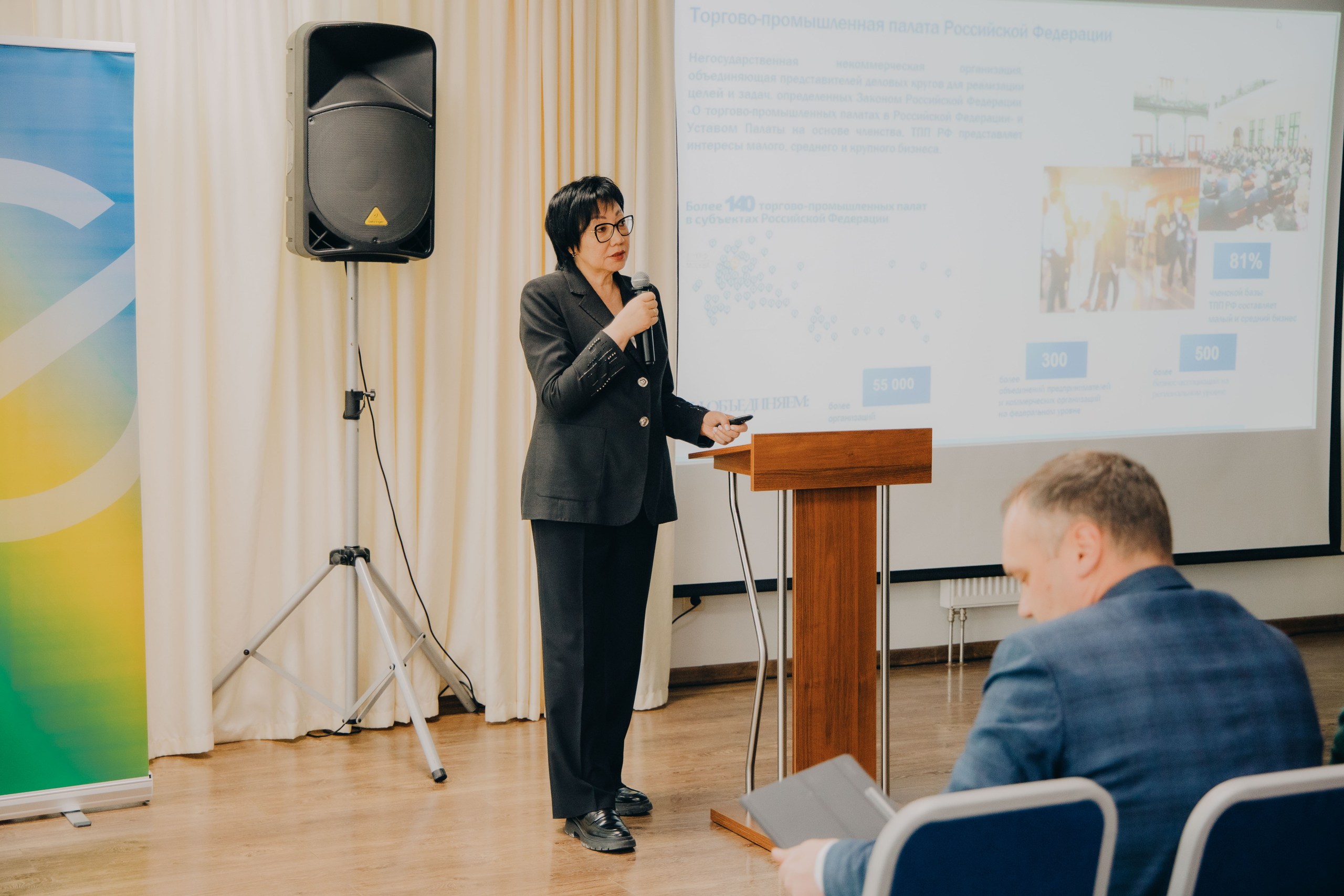 Далее слово взяла Галина Дзюба, рассказав подробно о работе Торгово-промышленной палаты Сахалинской области, которая сегодня включает уже свыше 160 организаций и более 11 деловых объединений.