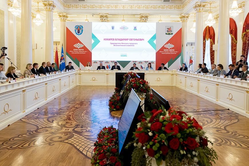 Сегодня в казанской Ратуше состоялось пленарное заседание в рамках бизнес-форума «Минск и Казань: побратимство – новый драйвер развития». Участники обсудили ключевые направления сотрудничества и расширение деловых контактов между городами-побратимами. По итогам заседания мэр Казани Ильсур Метшин и председатель городского исполкома столицы Беларуси Владимир Кухарев подписали Программу развития межмуниципального сотрудничества.