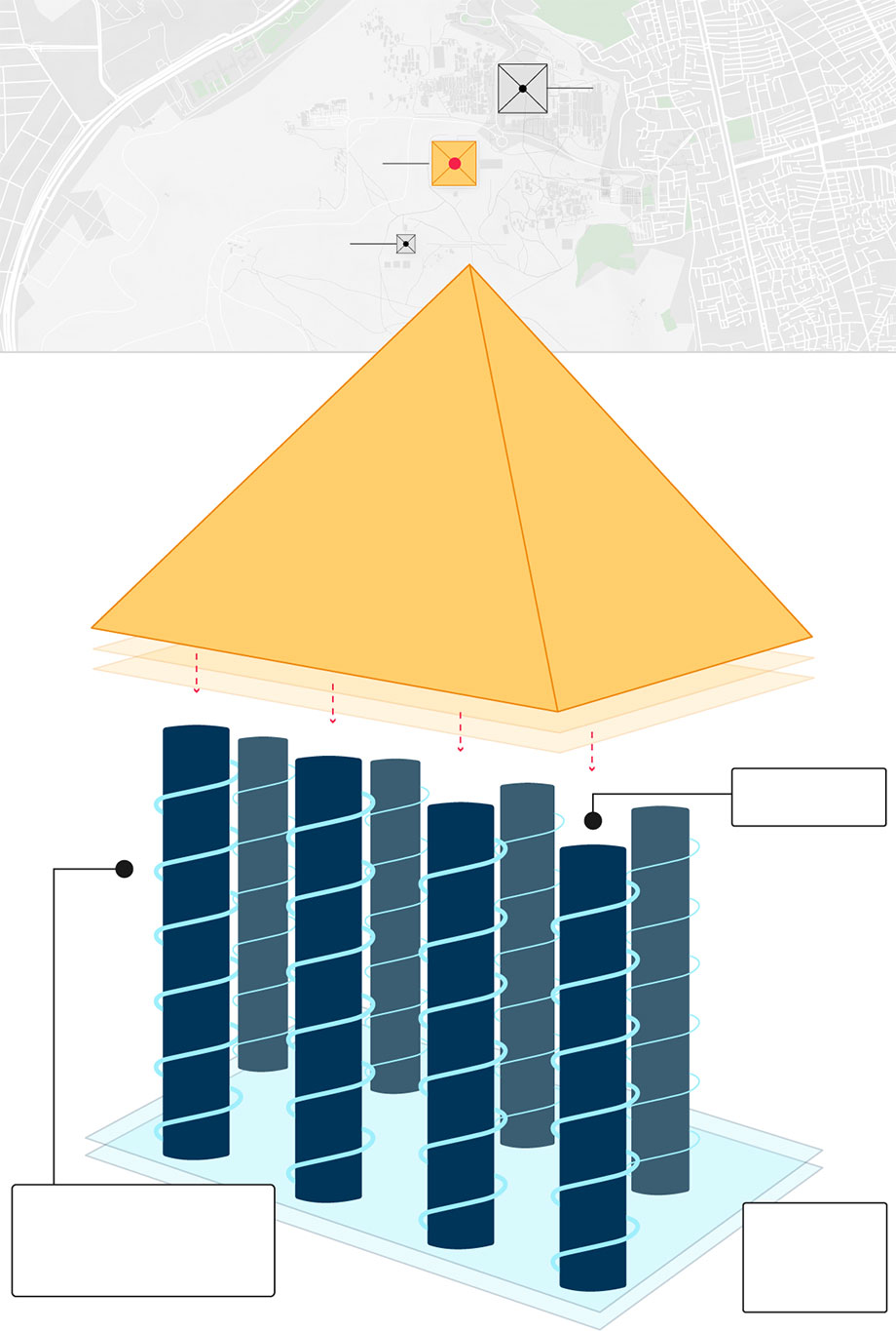 Команда обнаружила восемь цилиндрических шахт под пирамидой Хефрена, которые уходят на глубину более 2100 футов (640 метров) под основанием пирамиды. По бокам шахт расположены спиральные структуры.