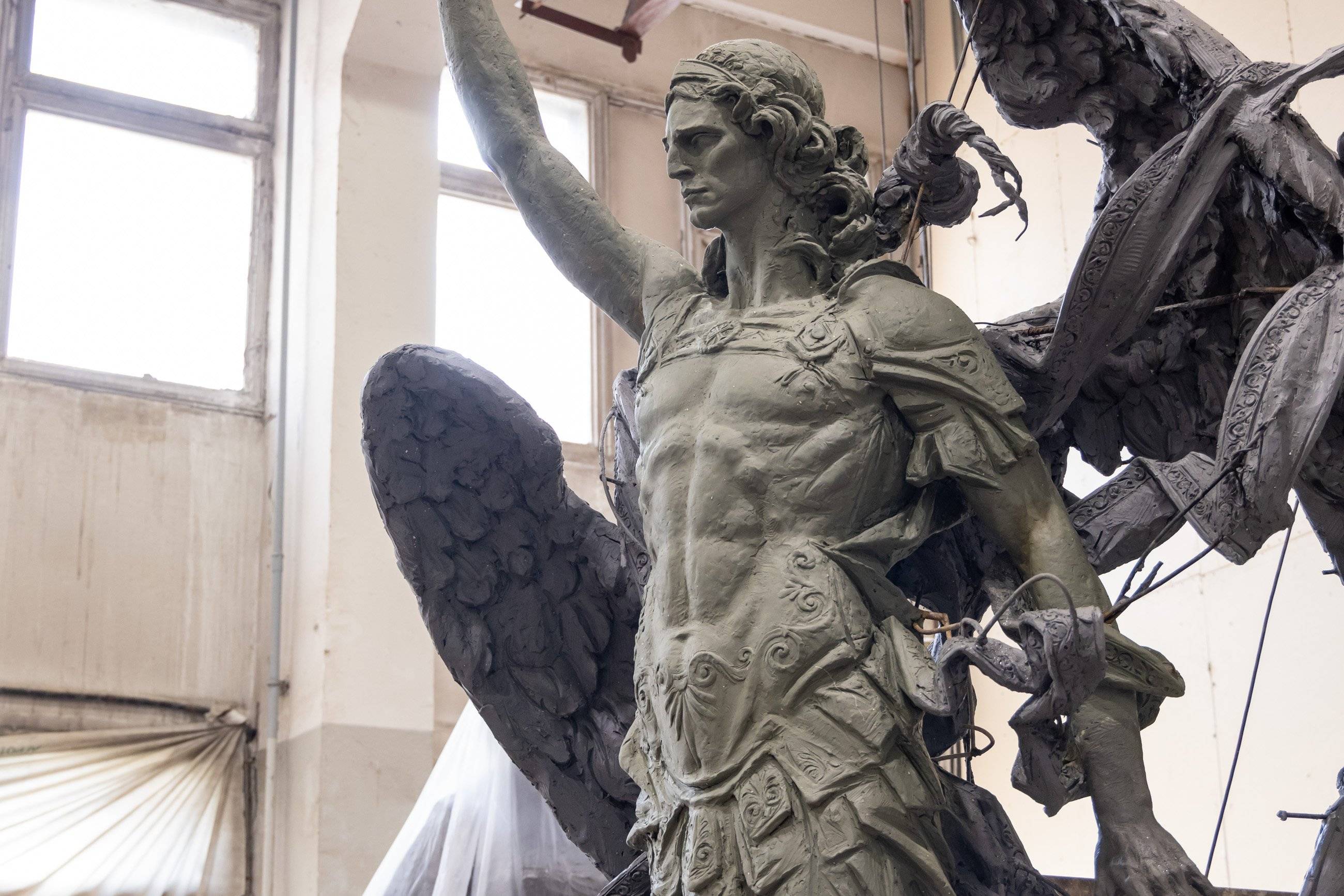 Центральным элементом мемориального комплекса станет вертикальная стела с фигурой Архангела Михаила, образ которогоизображен на гербе ДНР. Высота скульптуры – 3,7 метров. Скульптор Михаил Баскаков завершил работу по созданию скульптуры в мягком материале в величину сооружения.
