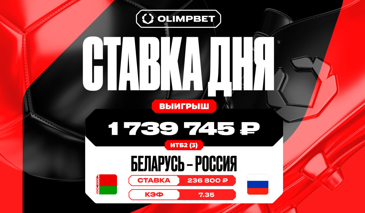 Один из клиентовOLIMPBETоформил смелую ставку на голы россиян в этом матче. Победа команды Карпина оценивалась коэффициентом 1.75, а беттор решил взять Индивидуальный тотал сборной России (3) больше. На этот исход клиент букмекера определил 236 800 рублей, задействовав коэффициент 7.35. В начале второго тайма, когда Гладышев забил свой четвертый матч, ставка сыграла — итоговый выигрыш составил 1 739 745 рублей.