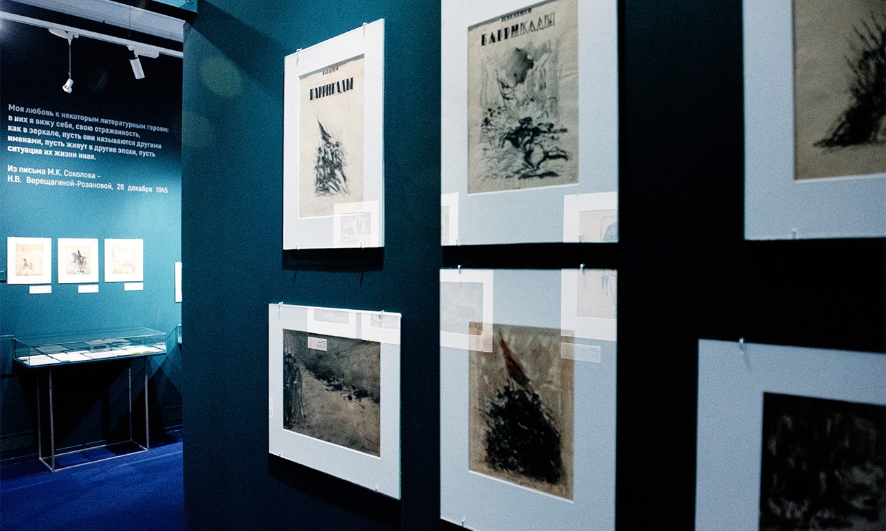 Графические его циклы обычно состояли из множества листов; далеко не все из тех работ сохранились, но даже и дошедшие до нас не поместились бы в отведенном пространстве — здесь показаны небольшие выборки. В музейной части почти все они имеют отношение к литературе, которая была подлинной страстью Соколова. Правда, книгоиздатели этой страсти оценить не сумели — или не захотели. «Он единственный раз участвовал в издании книги, — рассказывает сокуратор выставки, сотрудница музея Наталья Реброва. — В 1933 году издательство Academia предложило ему оформить „Орлеанскую девственницу“ Вольтера. Художник увлеченно взялся за заказ, но в итоге ему сократили количество листов и урезали формат. Он был крайне недоволен, этот опыт стал для него первым и последним, хотя книжными иллюстрациями он занимался на протяжении всей жизни — исключительно для себя». Раритетное издание Вольтера помещено в выставочную витрину.