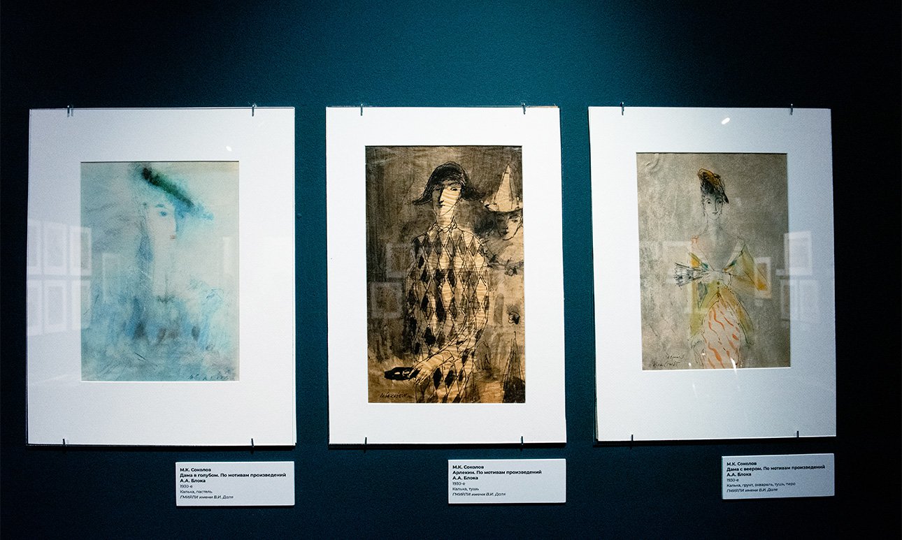 Выставка к 140-летию художника, устроенная Гослитмузеем, носит название «Потерянный временем». Михаил Соколов при жизни действительно чем дальше, тем бесповоротнее вплывал в категорию «лишних людей», в конце концов став натуральным лишенцем и лагерником. Отказ не только от установок соцреализма, но и вообще от всякой актуальности и социальной повестки был его осознанным выбором. Он ощущал себя поистине романтическим художником и стремился быть таковым. Мысленные диалоги с Шекспиром, Гофманом, Диккенсом или перекличка с Рембрандтом и Гойей волновали его куда сильнее, чем новости из советского репродуктора. Среди изображенных им персонажей посетитель выставки обнаружит святого Себастьяна, Анну Каренину, блоковскую Прекрасную Даму, героев Фенимора Купера и даже страусов из зоопарка, но ни одного пролетария и ни одной передовой доярки. Здесь пролегал рубеж, тихо им оберегаемый.