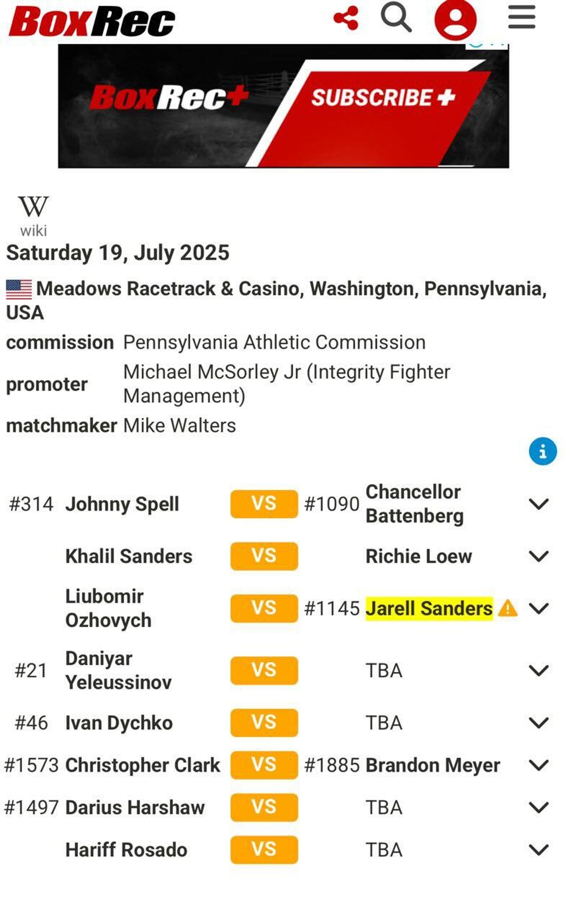 19 июля он примет участие на вечере бокса в американском штате Пенсильвания.