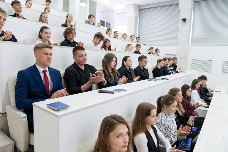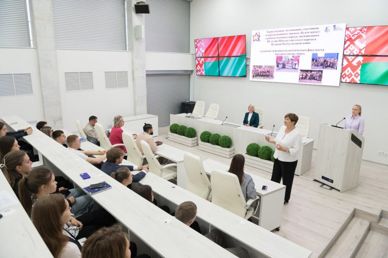 С приветственным словом к присутствующим обратилась проректор по научной работе Татьяна Анатольевна Морозевич-Шилюк и выразила благодарность студентам за активное участие в параде.