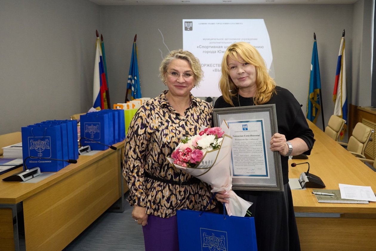 В рамках церемонии приветственным адресом администрации Южно-Сахалинска была поощрена директор спортивной школы по плаванию Елена Завязкина. Почетные грамоты вручены тренерам-преподавателям по художественной гимнастике Ксении Тихомировой и Инне Цыгановой, хореографу Наталье Козловой. Благодарственного письма удостоена тренер-преподаватель по плаванию Татьяна Рыбьянова.