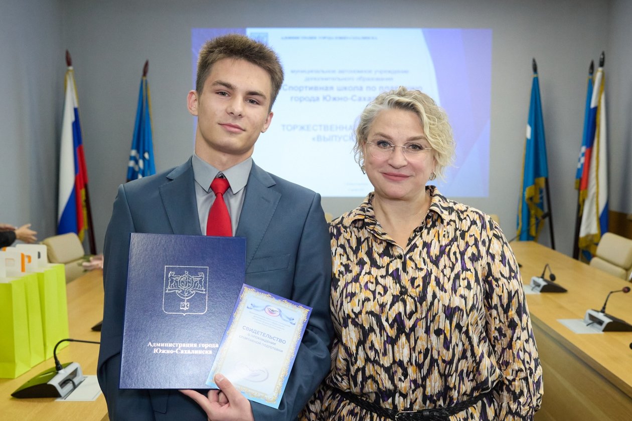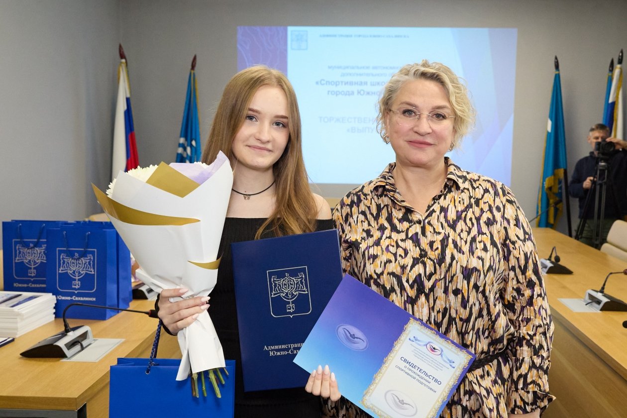Поздравили выпускников и вручили им заслуженные награды вице-мэр Южно-Сахалинска ЕленаФедорова и директор департамента по физической культуре и спорту АлексейБоженко.