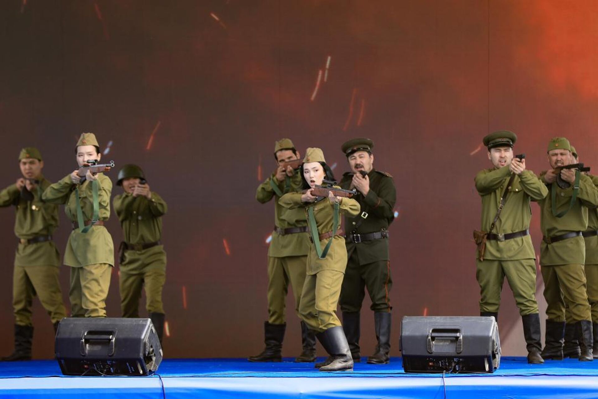 Гостям праздника представили театрализованный спектакль о жизни и подвиге Алии Молдагуловой. На сцене оживали страницы ее биографии, от детства в селе Булак до героической гибели на фронте.