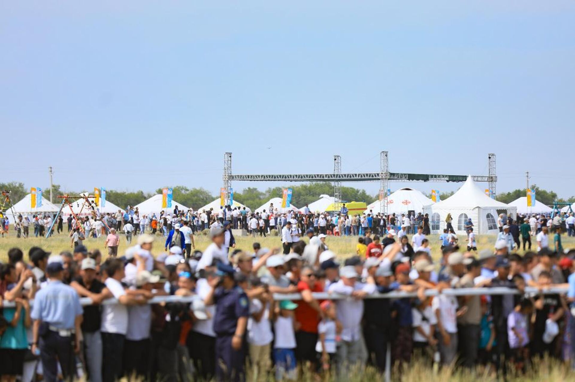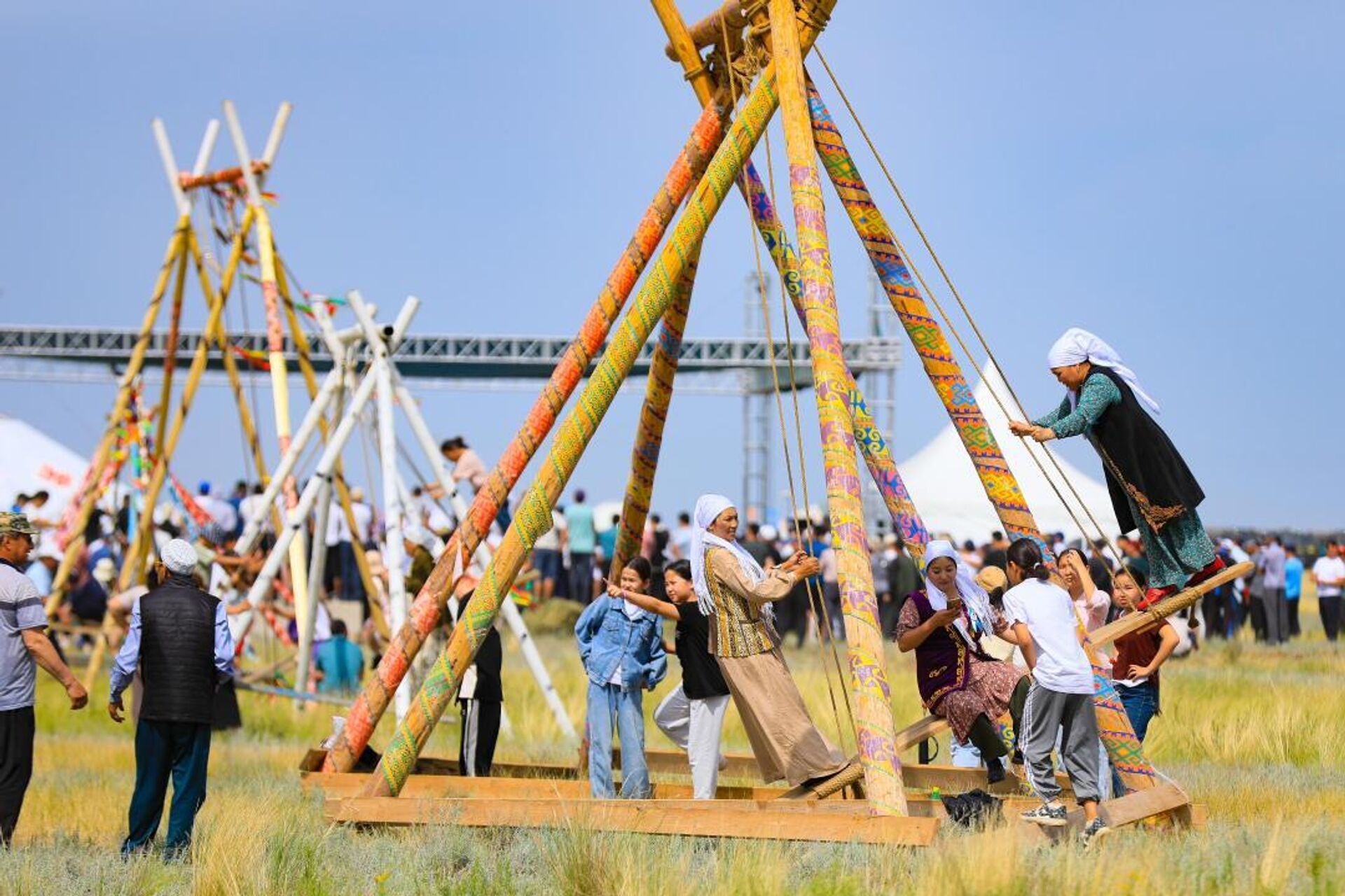 Гости торжества наблюдали за национальными играми, катались на алтыбакане (качелях) и угощались традиционными казахскими блюдами.