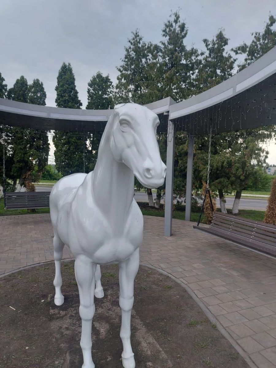 У одной из трёх лошадей, символизирующих казачью стражу южных рубежей, были оторваны уши