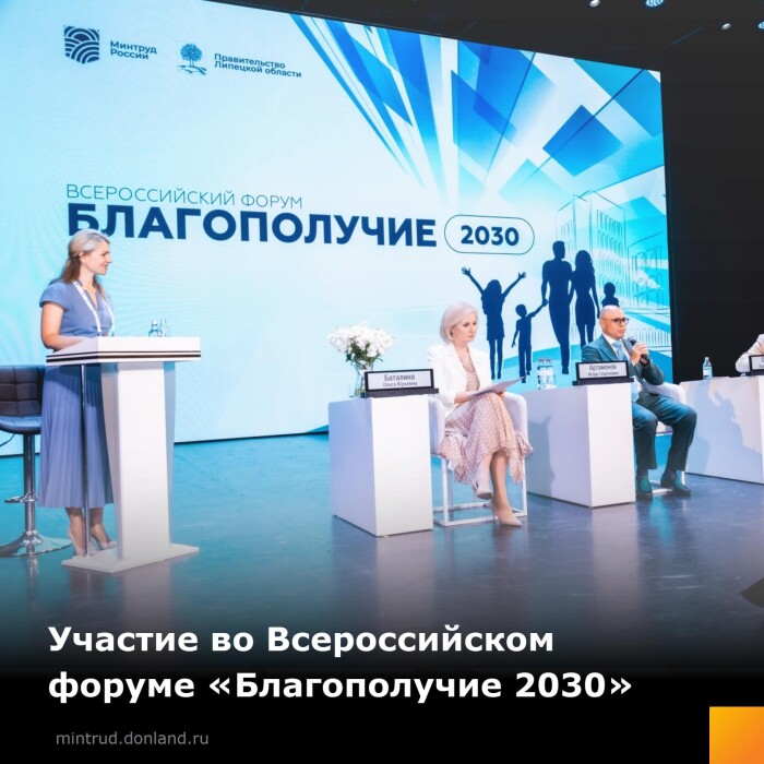 Заместитель министра труда и социального развития Ростовской области Анна Мельникова с 10 по 11 июня 2025 года приняла участие в работе Всероссийского форума «Благополучие 2030», организованном Правительством Липецкой области при поддержке Министерства труда и социальной защиты Российской Федерации.